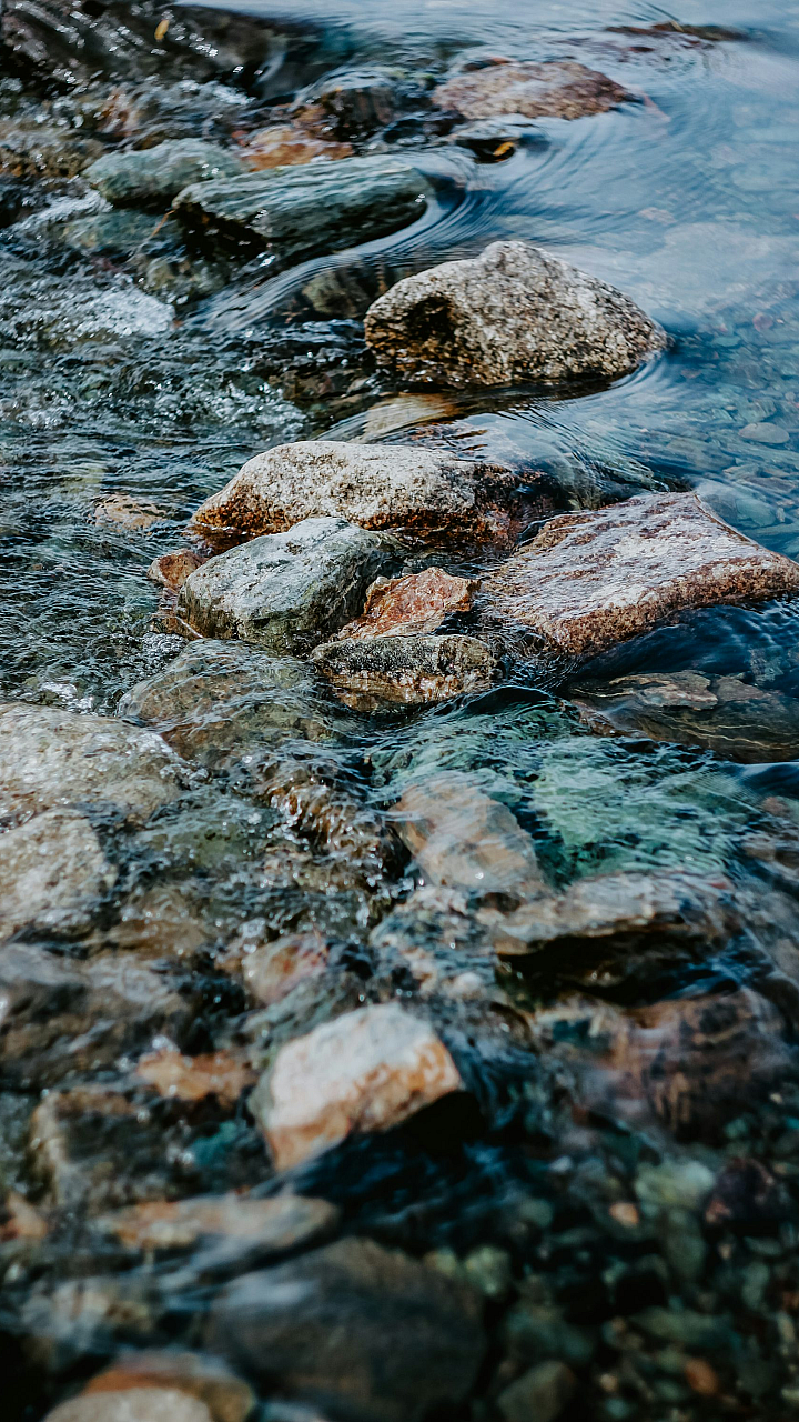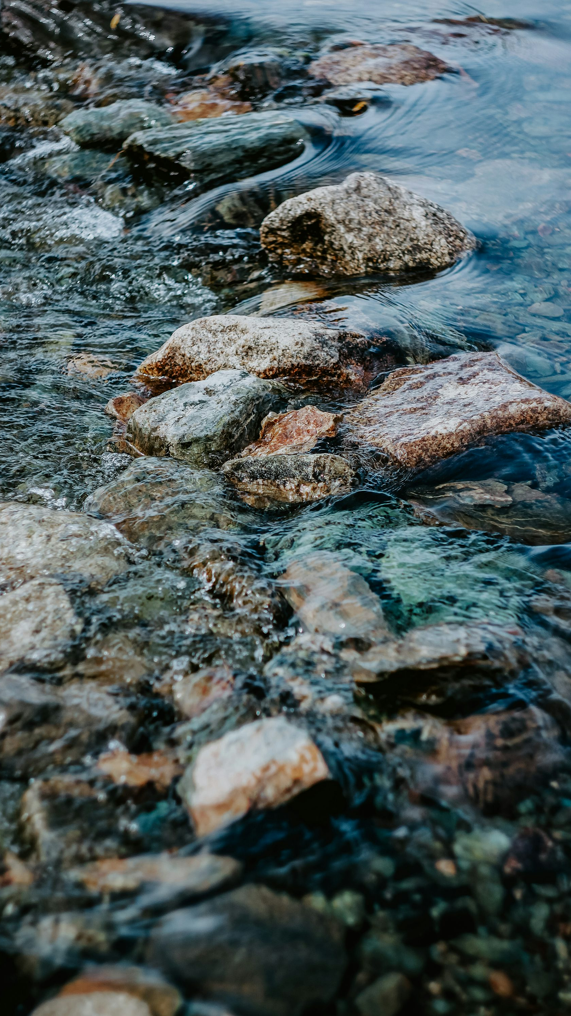 brown rock, gray rock, water, stone, river, ocean, sea, lake, beach, coast, rocks, stones, brown and gray, rocky shore, natural landscape