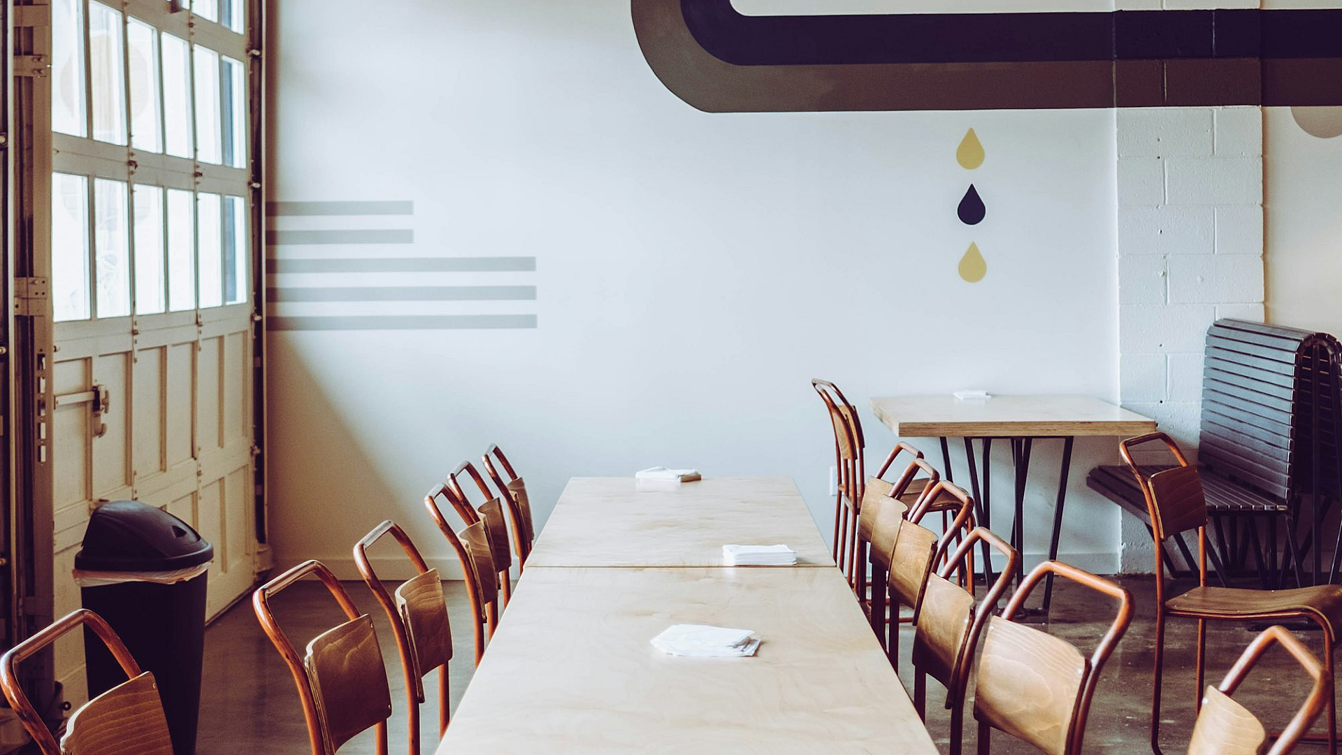 Wallpaper Brown Chairs Arranged in Front of Brown Table