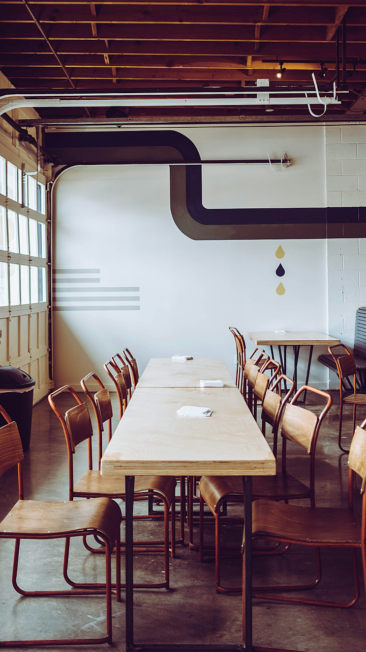 brown chairs arranged in front of brown table