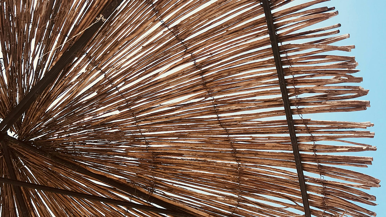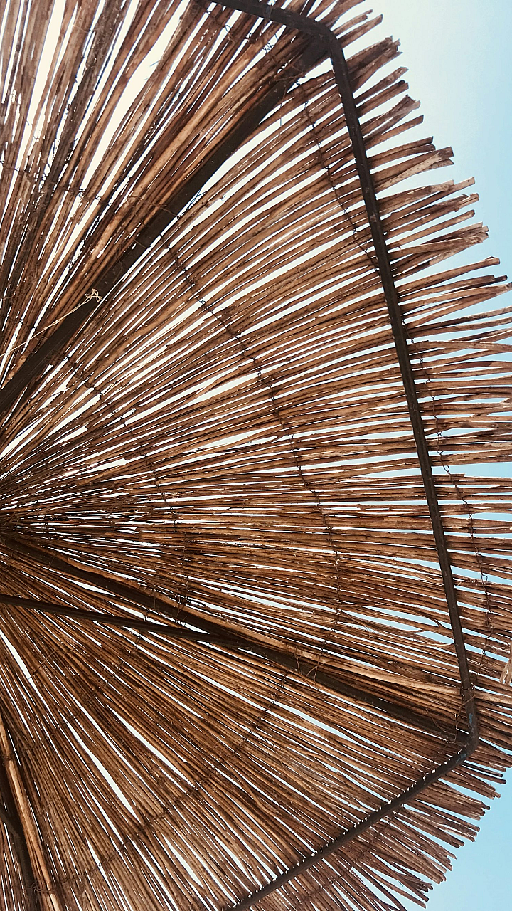 brown hay umbrella, blue sky, rustic umbrella, countryside umbrella, straw umbrella, hay umbrella, umbrella under blue sky, summer wallpaper, nature wallpaper, outdoor wallpaper, sky wallpaper, rural wallpaper, pastoral wallpaper, farm wallpaper, background, landscape wallpaper