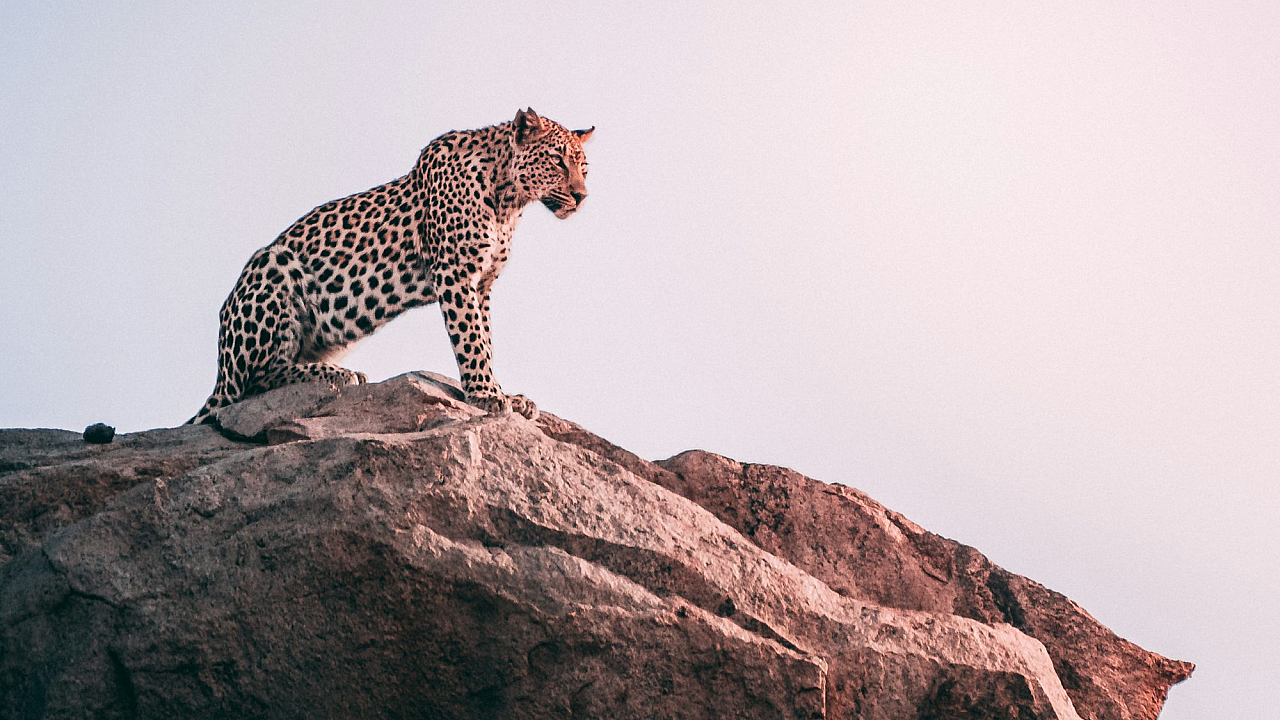 brown leopard on top of grey rock