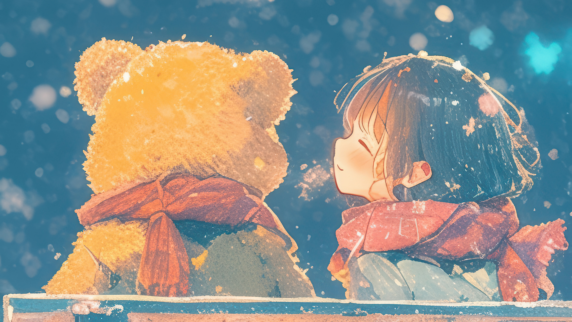 chibi, anime, girl, bear, cute, kawaii, adorable, wallpaper, background, desktop wallpaper, phone wallpaper, animal girl, anthropomorphic, fantasy, illustration