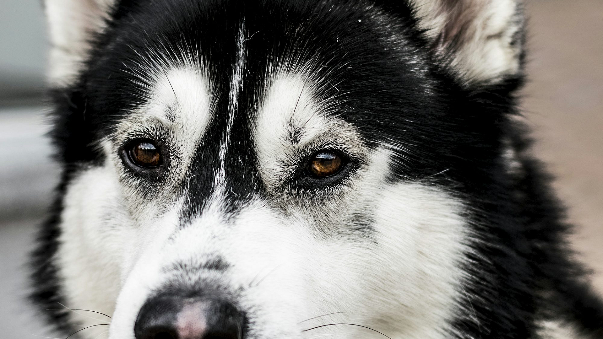 Siberian Husky, Black and White Husky, Husky Wallpaper, Dog Wallpaper, Close Up, Macro Photography, Animal Wallpaper, Pet Wallpaper, Canine, Wolf-like Dog, Arctic Dog, Black and White Photography, Monochrome, Portrait, Husky Face