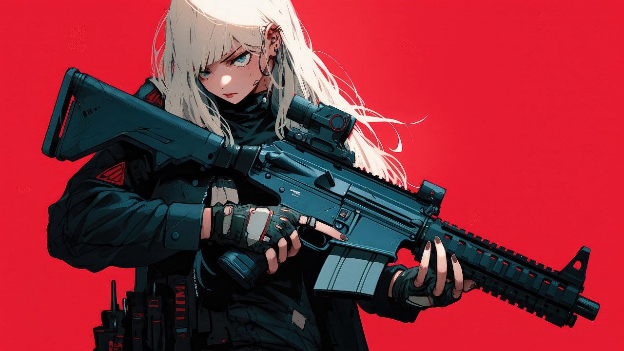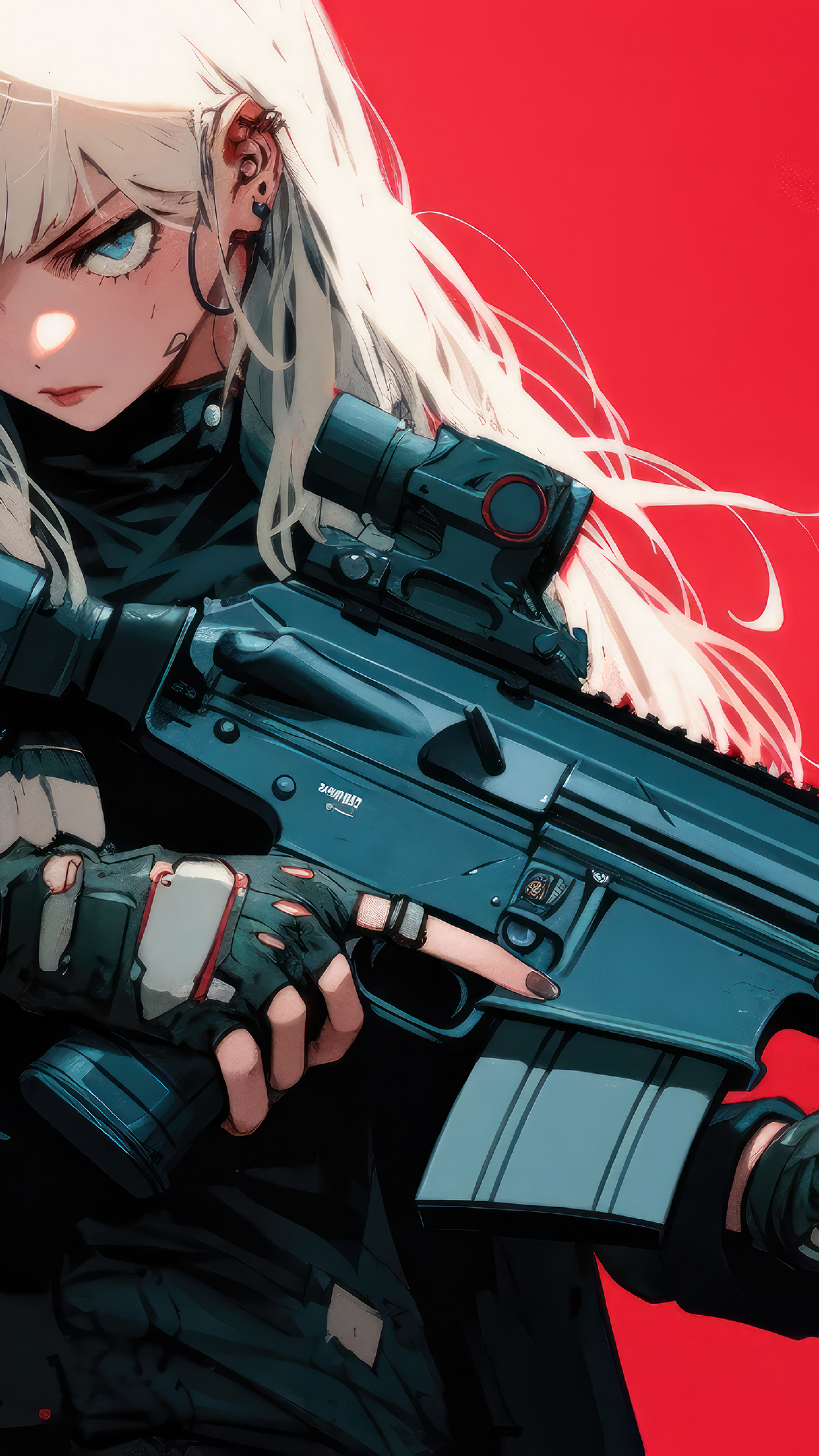 Cyberpunk, Anime Girl, Rifle, Sci-fi, Fantasy, Future, Technology, Weapon, Girl, Woman, Female, Cyberpunk art, Anime wallpaper, 4k wallpaper, High-resolution