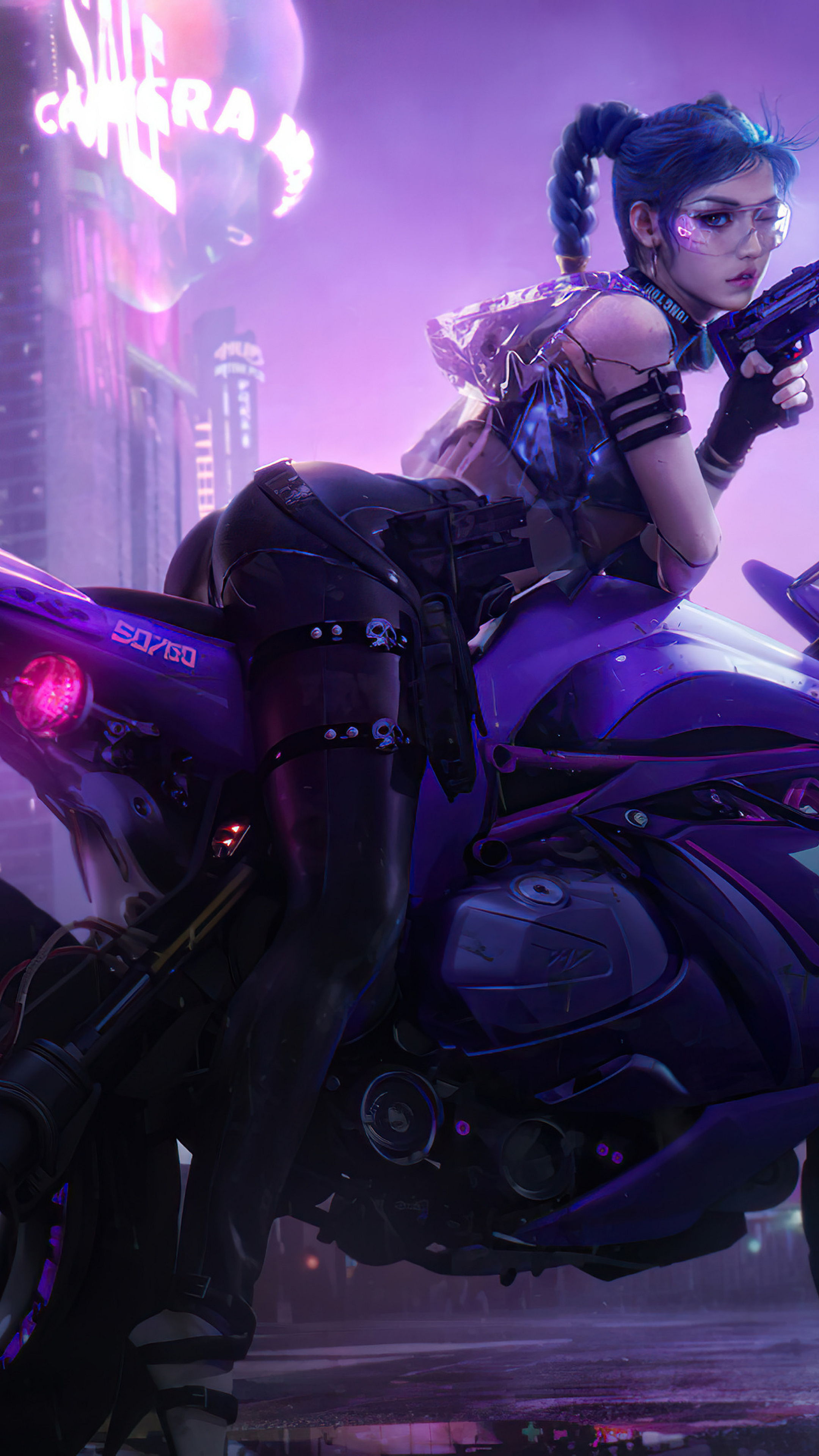 Wallpaper Cyberpunk Biker Girl Motorcycle