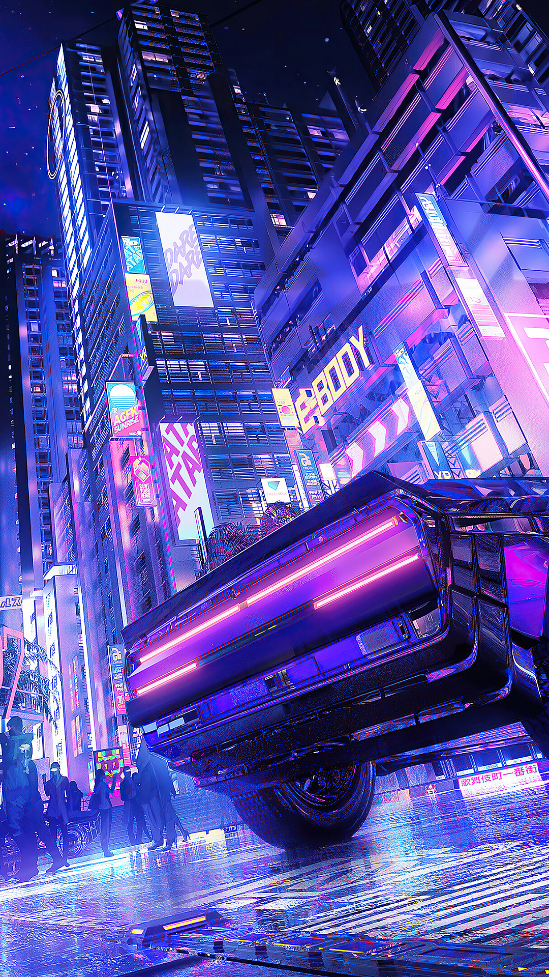 Cyberpunk, Car, Night City, Neon, Sci-fi, Futuristic, Vehicle, Automobile, Cityscape, Night, Darkness, Lights, Street, Urban, Wallpaper