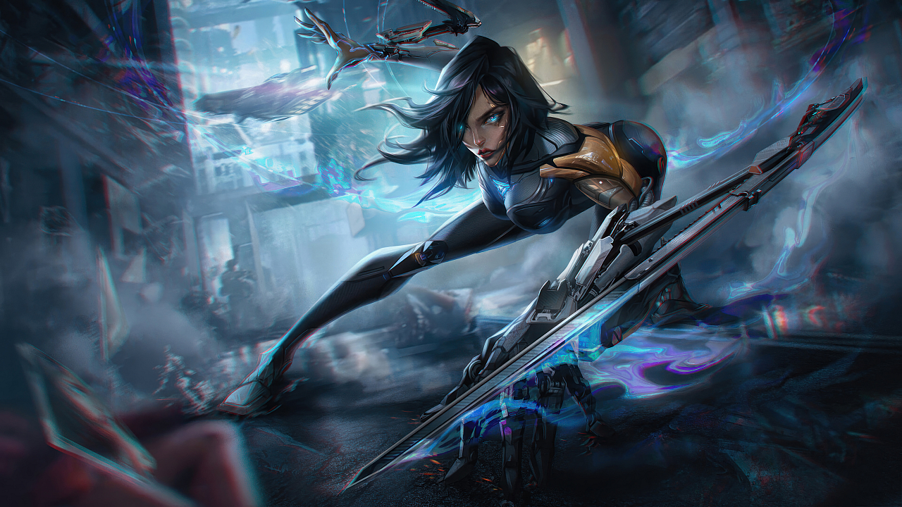 Wallpaper Cyberpunk Girl Gun Battle Sci-Fi