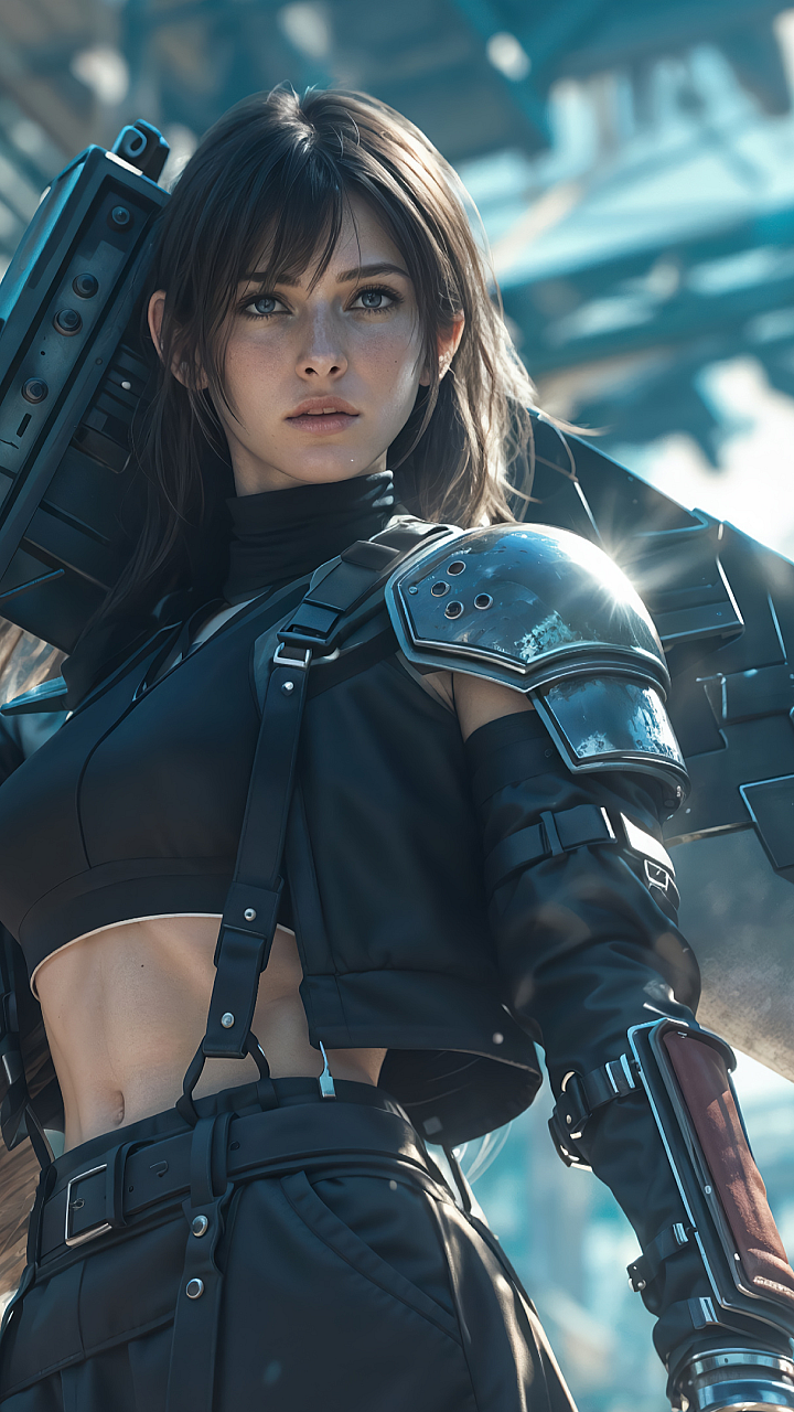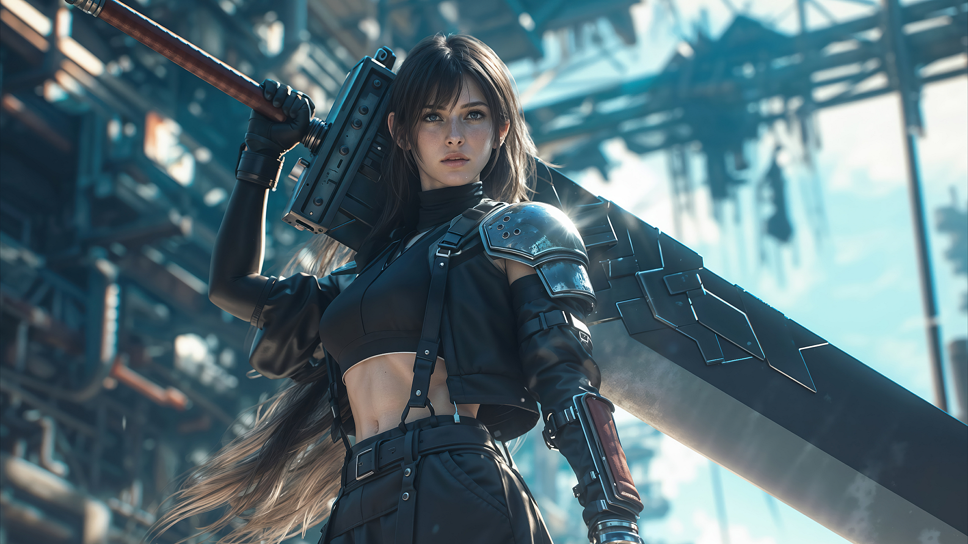 Cyberpunk, Girl, Big Sword, Sci-Fi, Fantasy, Future, Technology, Swordswoman, Warrior, Cyberpunk Girl, Sci-Fi Girl, Digital Art, Blade, Neon, Cyberpunk Wallpaper