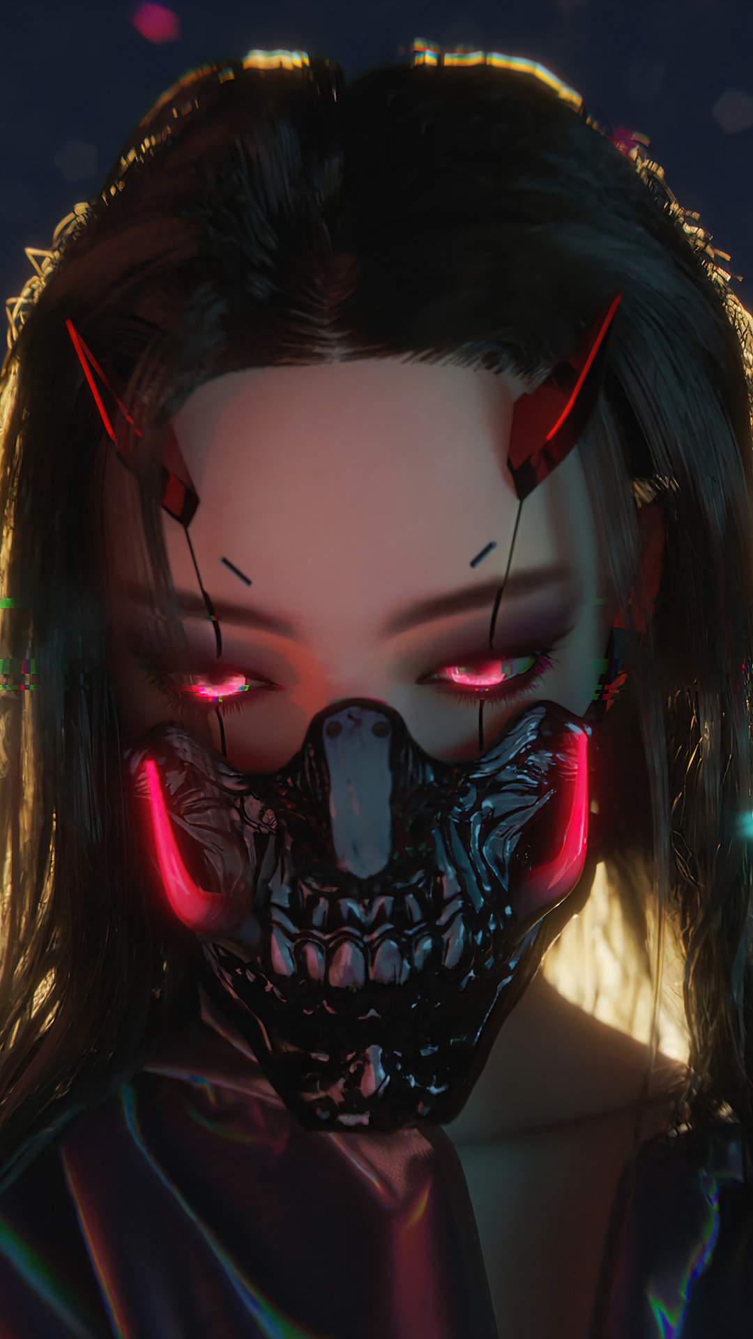 Cyberpunk, Girl, Mask, Digital Art, Wallpaper, Sci-fi, Future, Neon, Cybernetic, Female, Technology, Artificial Intelligence, Fantasy, Dark, Gritty