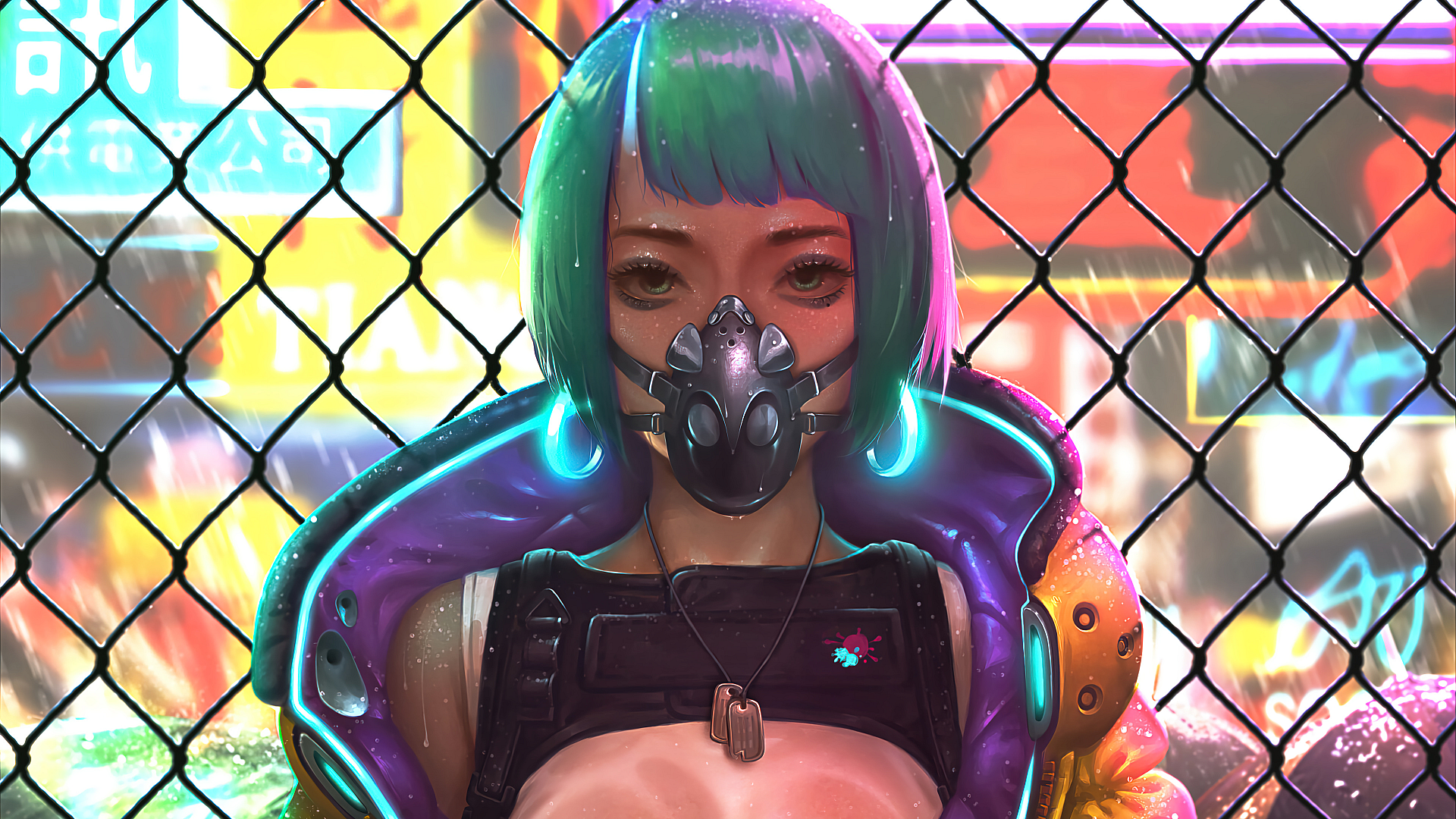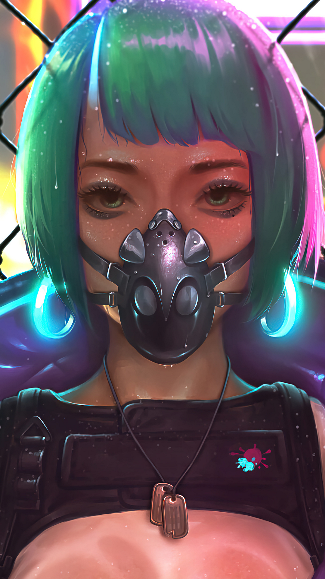 Wallpaper Cyberpunk Girl Mask Sci-Fi