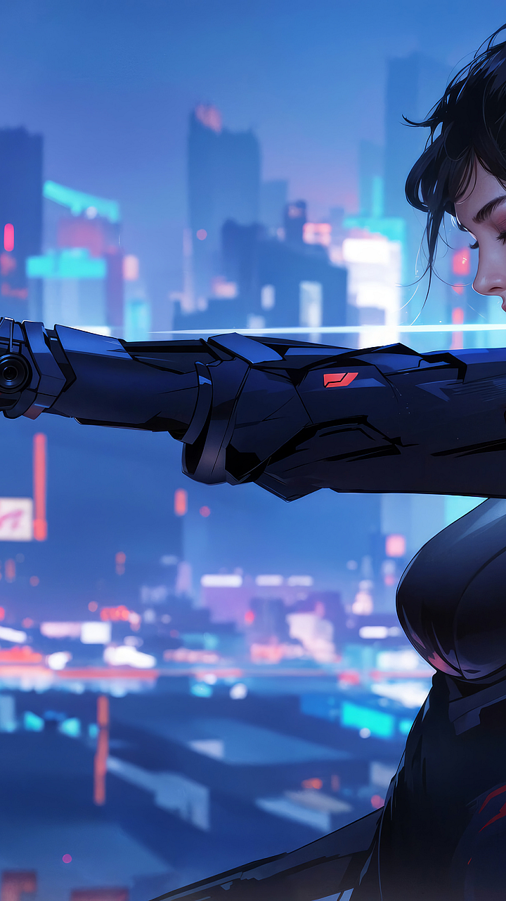 Cyberpunk, Sci-Fi, Girl, City, Future, Neon, Technology, Fantasy, Digital Art, Cyberpunk Girl, Sci-Fi Cityscape, Futuristic City, High-Tech, Urban Fantasy, Artificial Intelligence