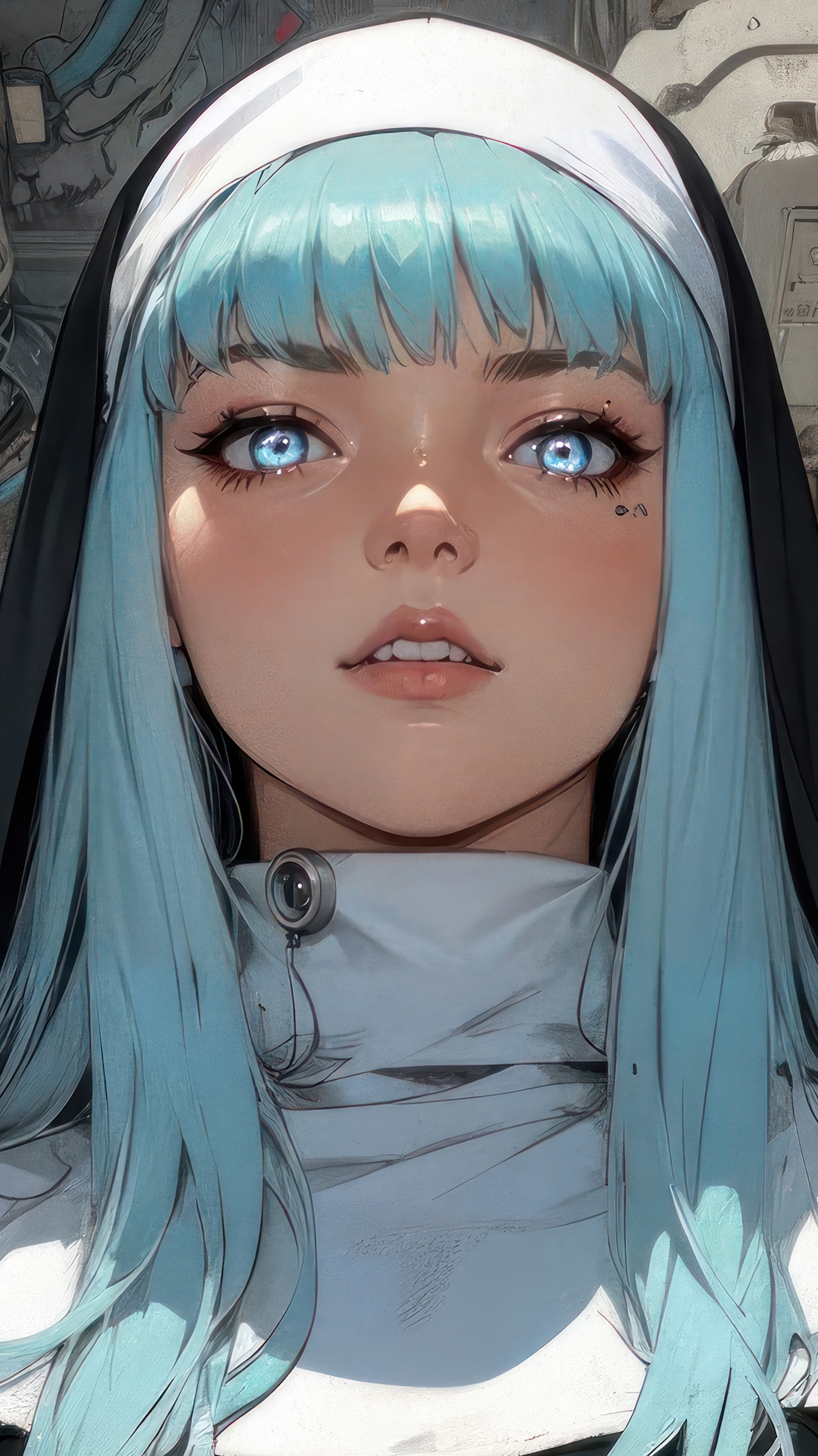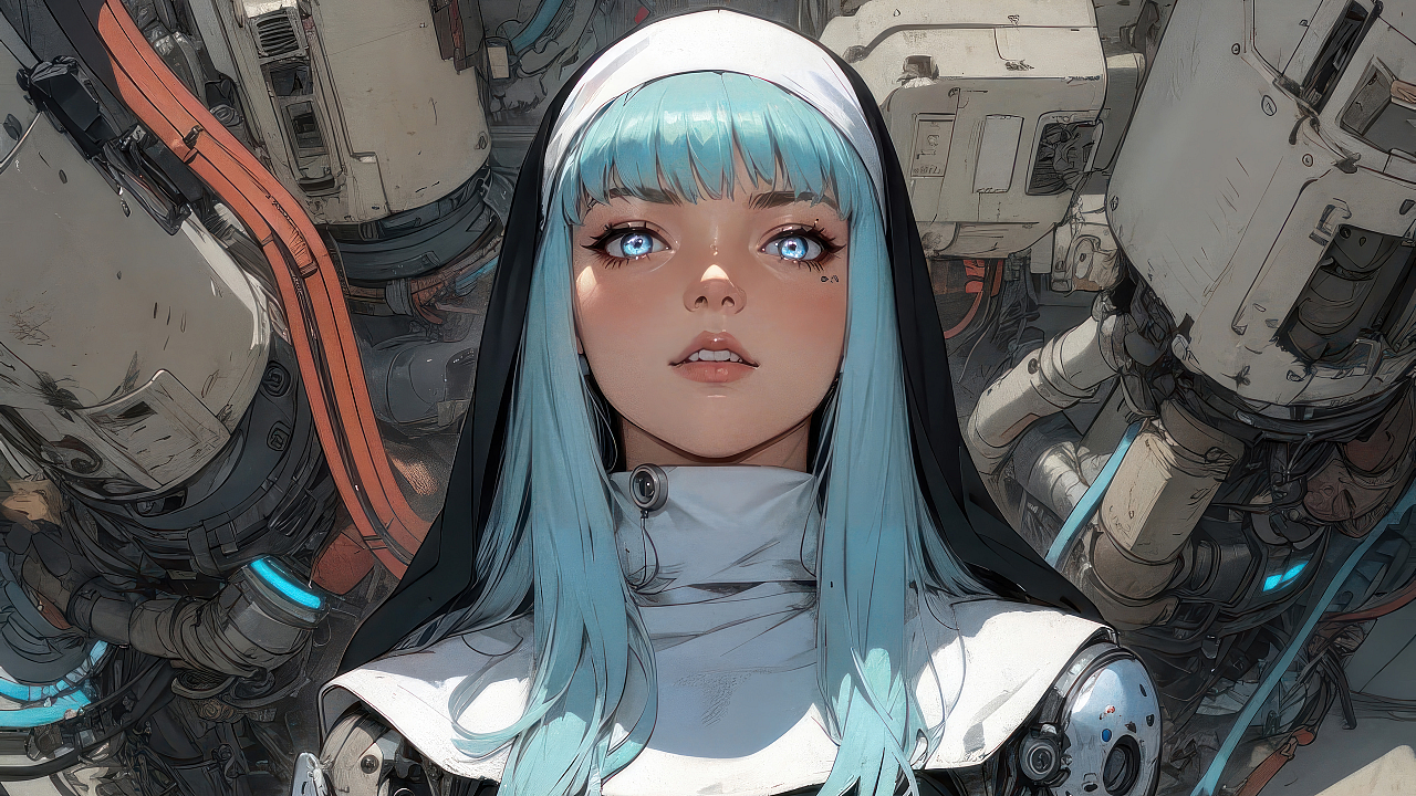 Cyberpunk Nun, Anime Girl, Cyberpunk, Anime, Nun, Girl, Sci-fi, Futuristic, Digital Art, Wallpaper, Background, Neon, Cyberpunk Aesthetics, Religious Iconography, Future Technology, Fantasy