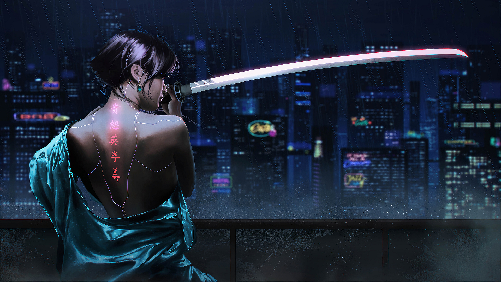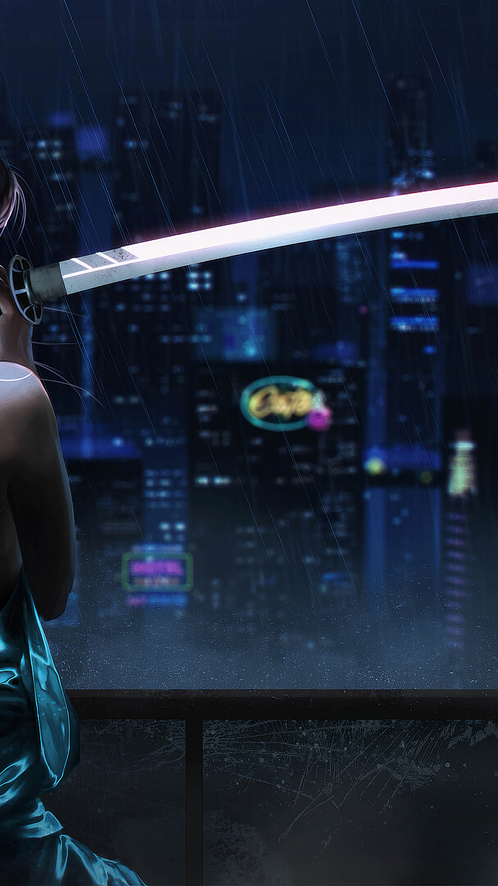 Wallpaper Cyberpunk Samurai Girl Katana