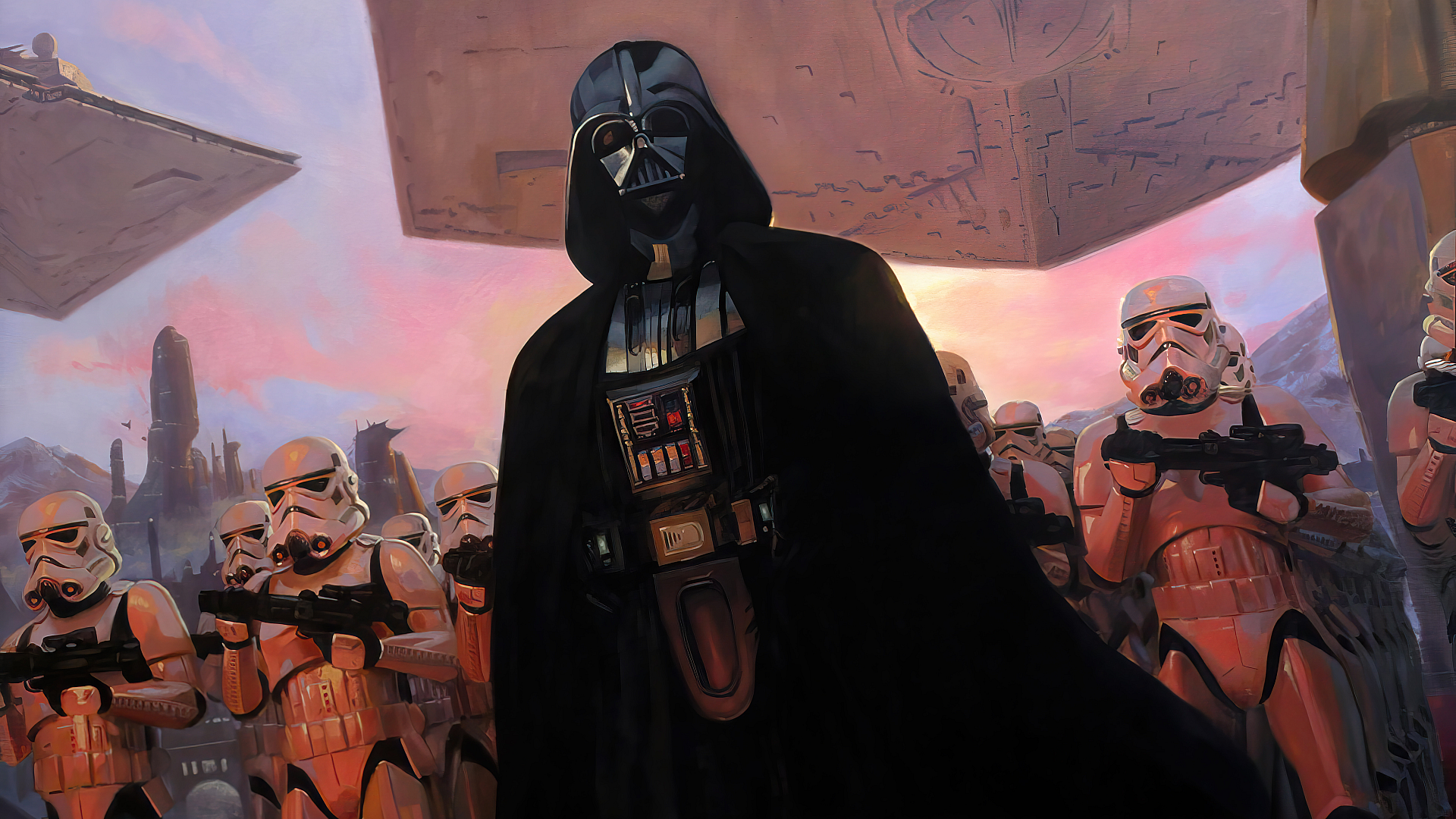 Darth Vader, Stormtroopers, Star Wars, Galactic Empire, Imperial Forces, Dark Side, Sith Lord, Rebel Alliance, Space Opera, Science Fiction, Fantasy, Wallpaper, Background, Desktop, Mobile