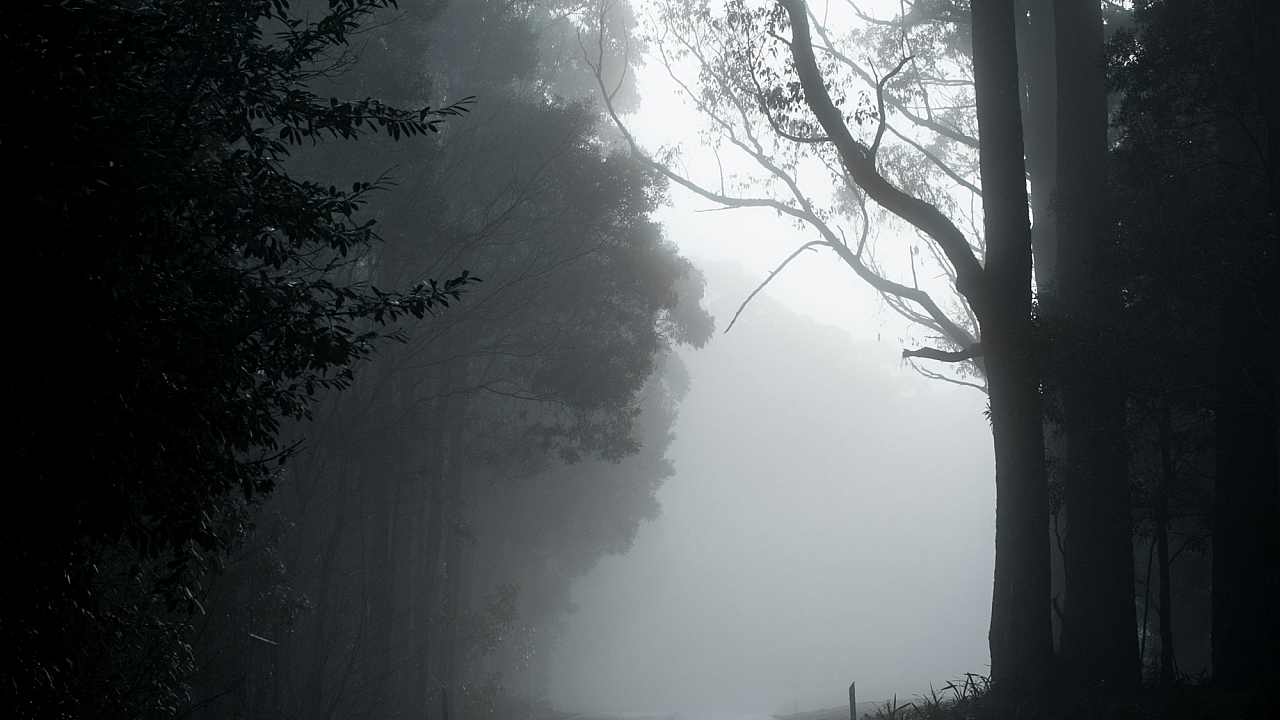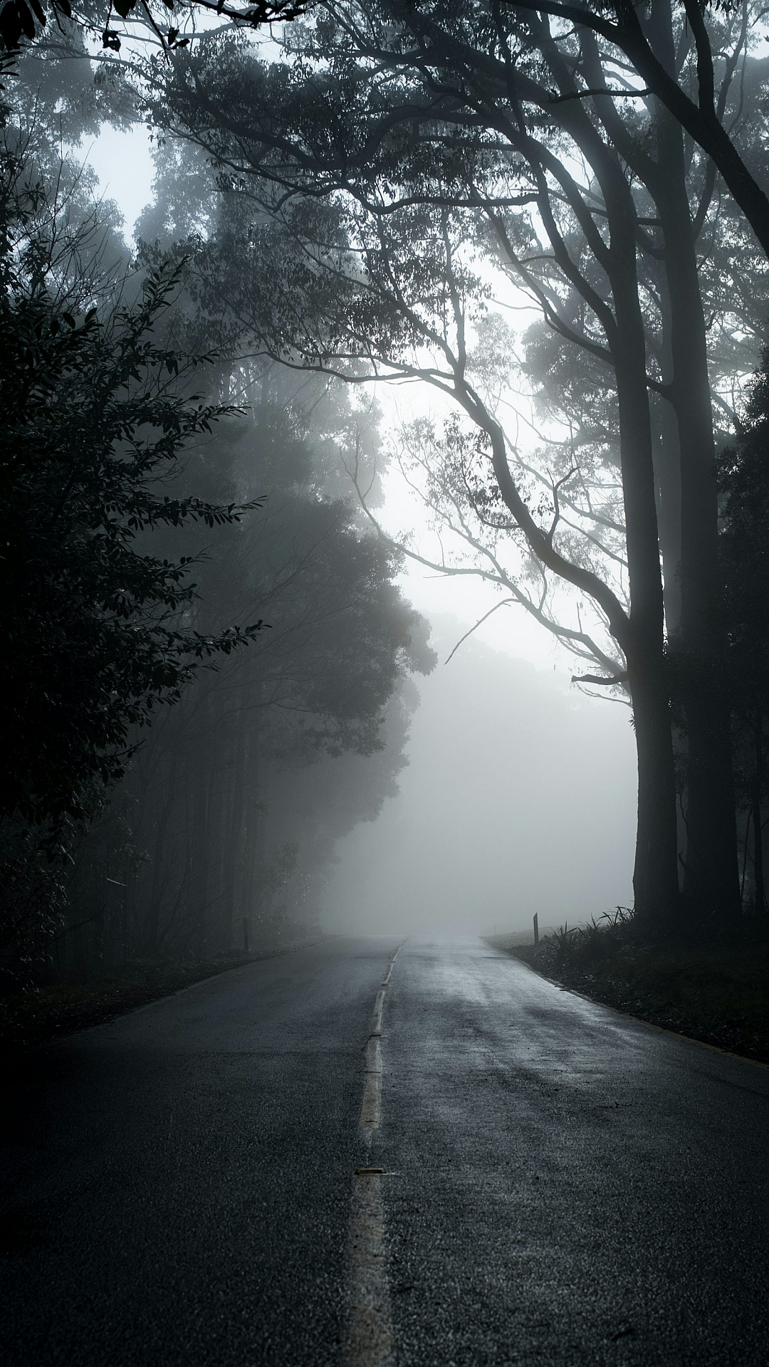 grayscale, monochrome, black and white, road, path, trees, woods, forest, gray, grey, photography, image, picture, landscape, nature