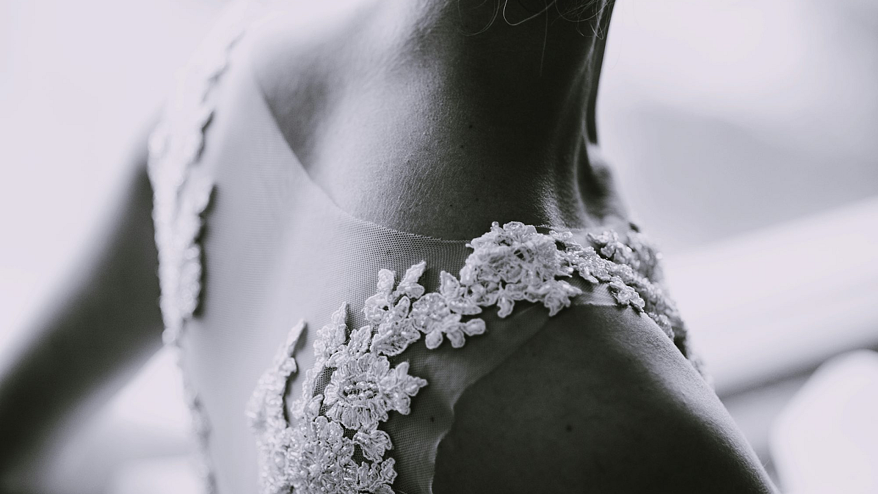 Wallpaper Grayscale Photography of a Woman in a Lace Sleeveless Dress