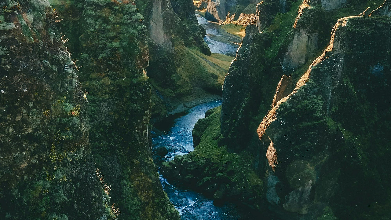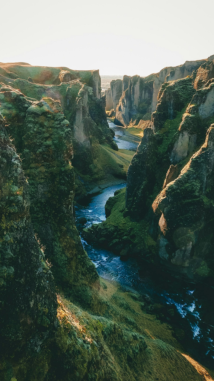Wallpaper Green Cliffs Near Body of Water