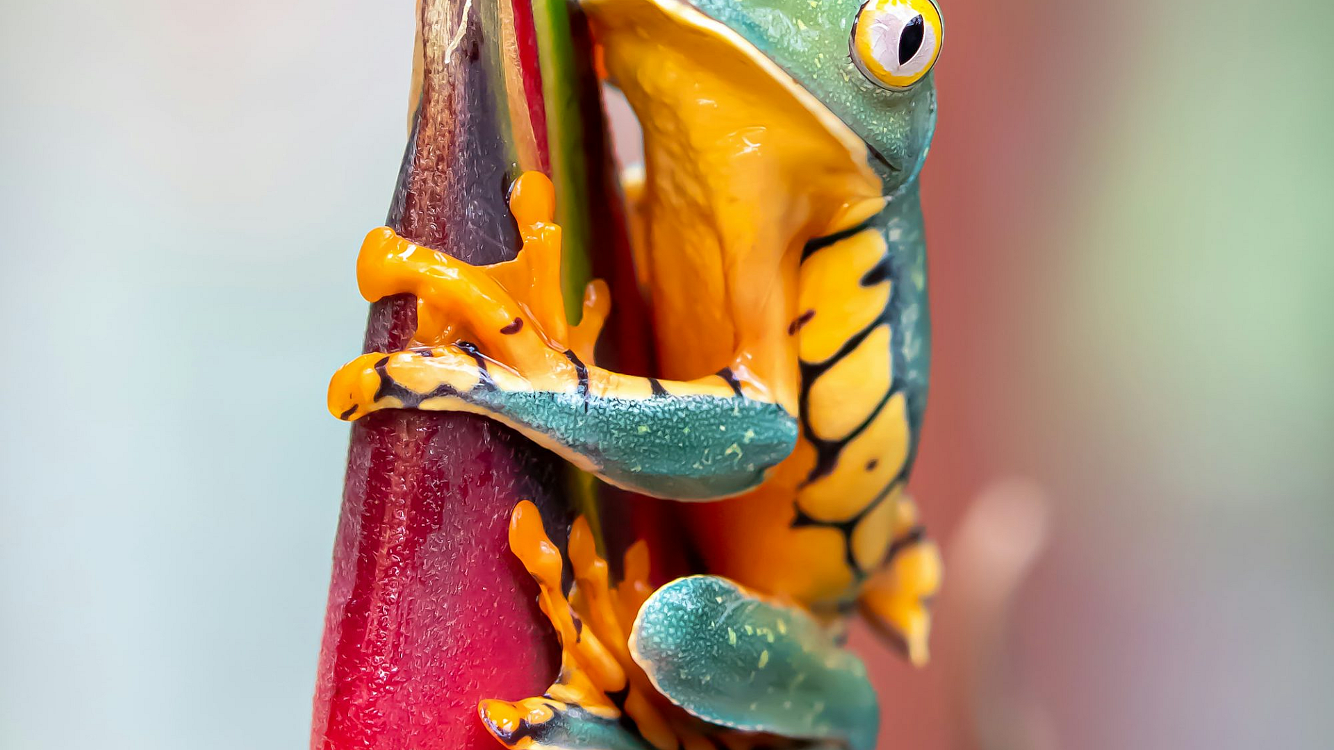 Wallpaper Green Frog on Red Post