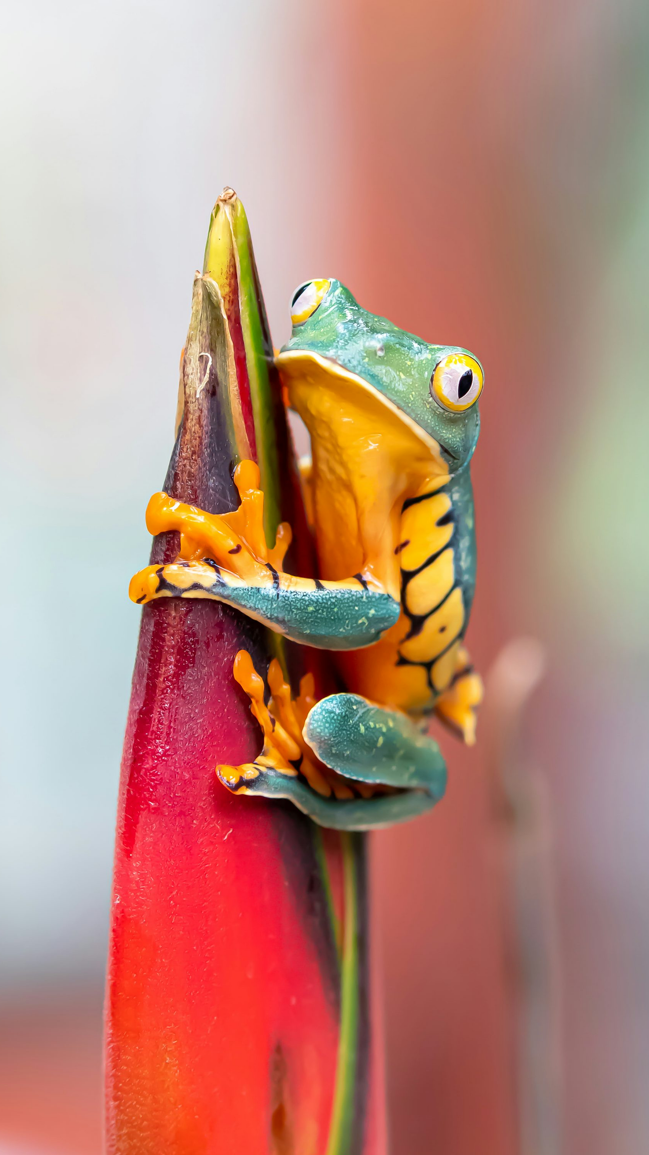 green frog, red post, amphibian, frog wallpaper, nature wallpaper, animal wallpaper, wildlife wallpaper, green, red, post, pillar, column, reptile, frog on post, macro photography