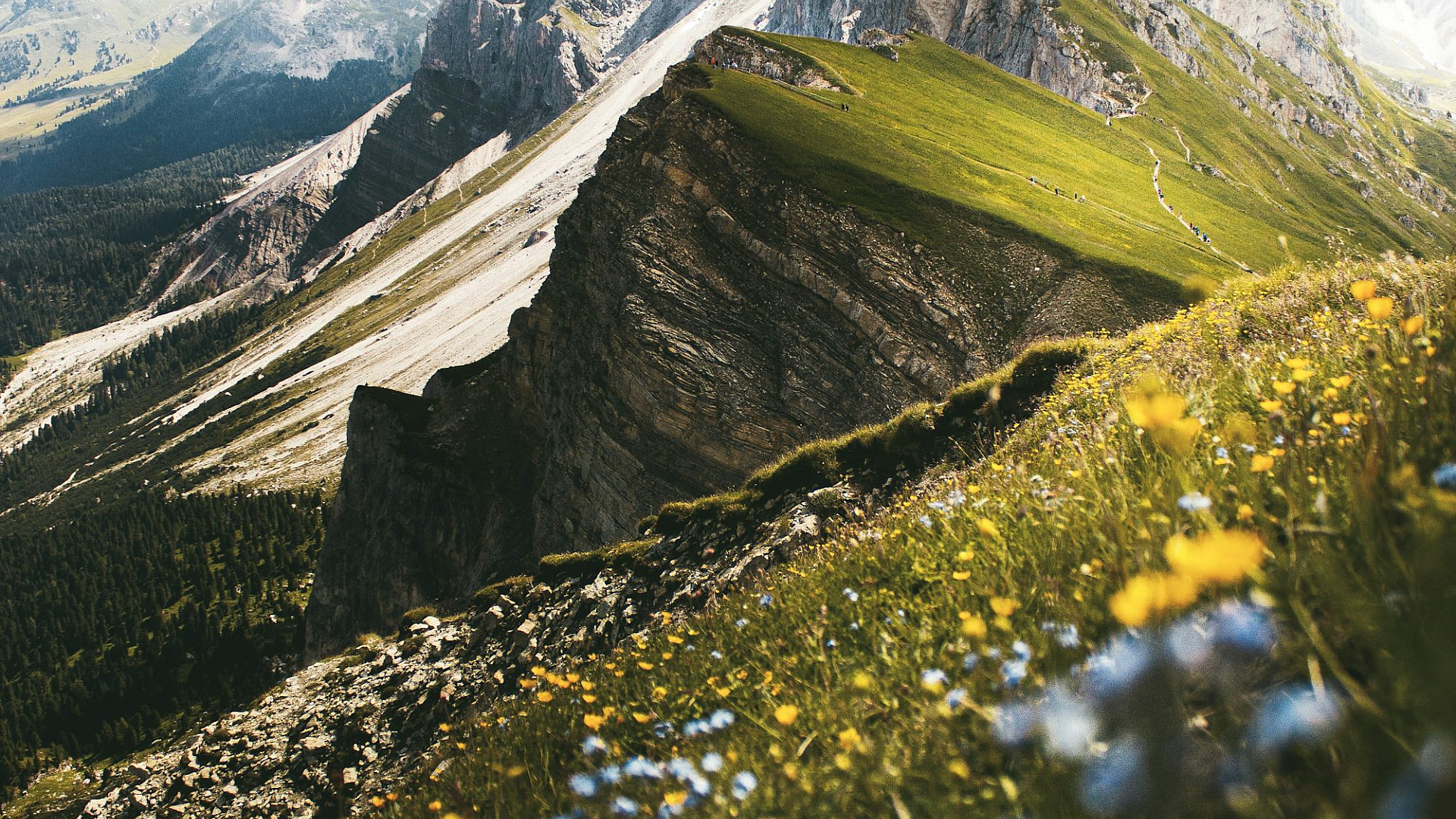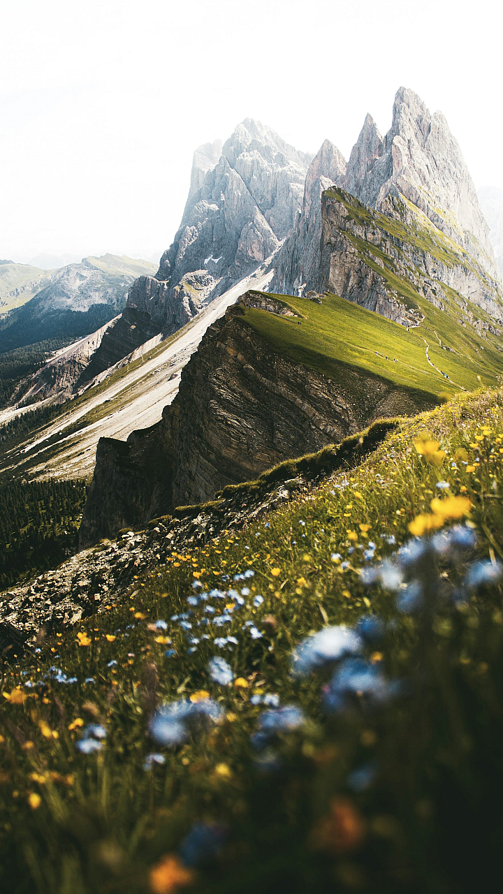 green grass, gray mountain, rocky mountain, mountain range, daytime, landscape, nature, scenery, outdoor, hill, meadow, field, alpine, peak, rocks