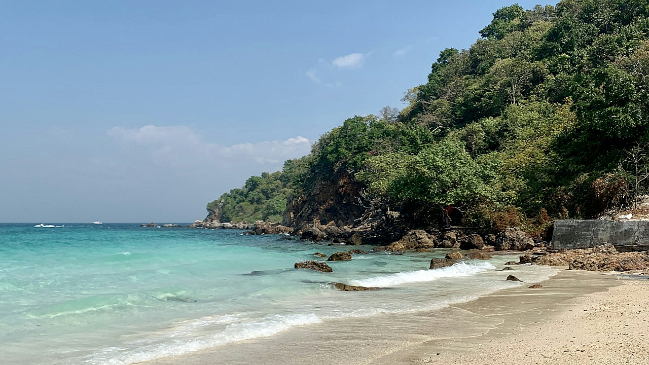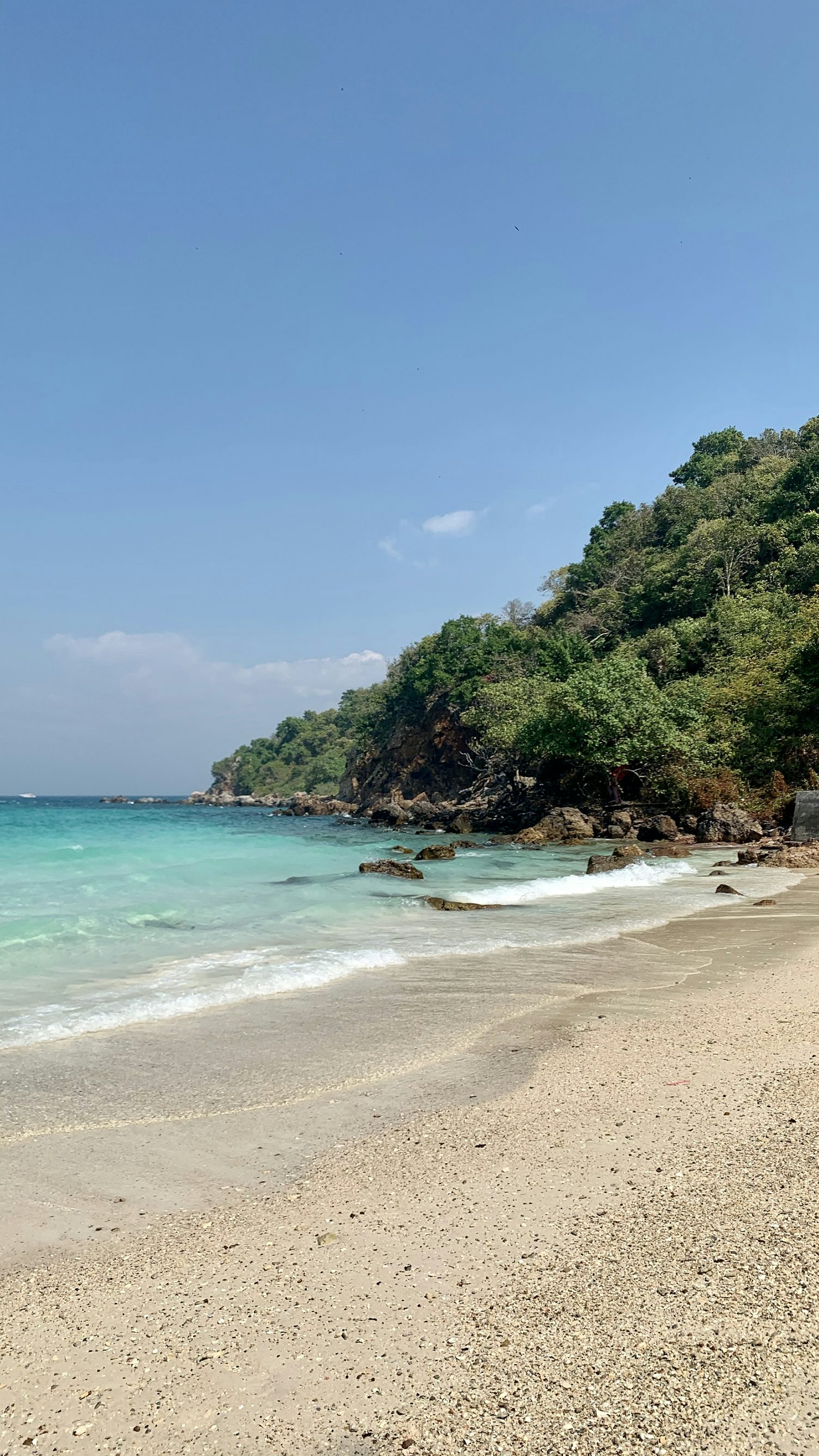 green trees, brown sand, beach, daytime, seashore, coastline, tropical, nature, landscape, ocean, sand dune, foliage, summer, sunlit, scenic
