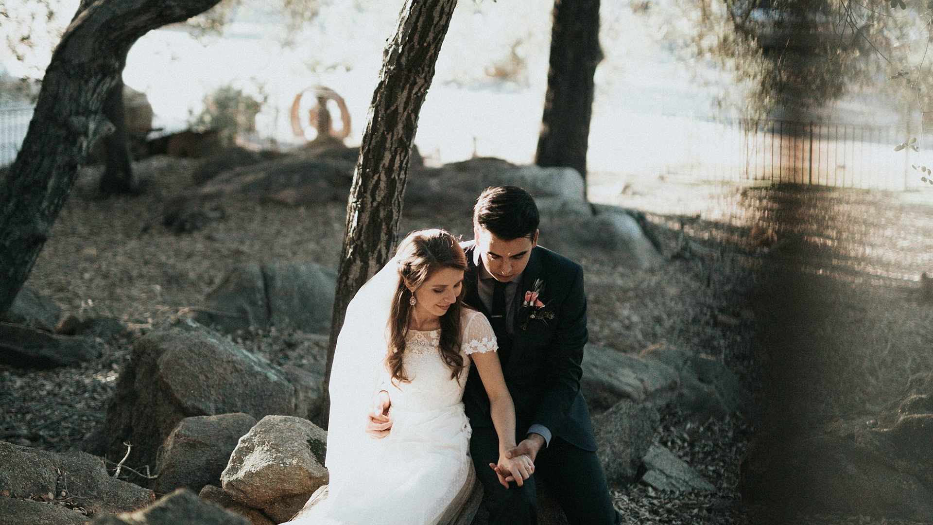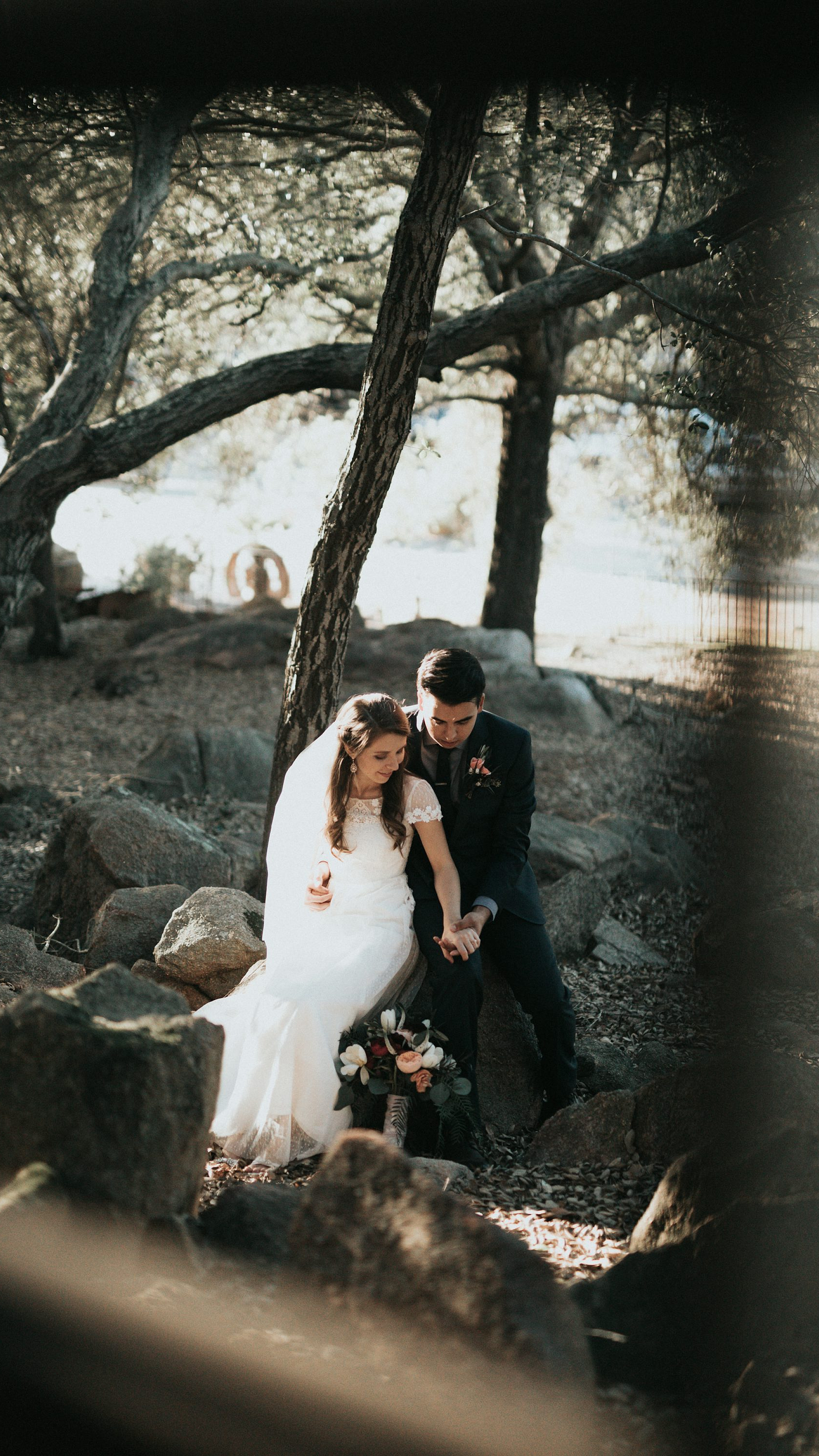 groom, bride, wedding, couple, rock, holding hands, sitting, love, romance, marriage, relationship, affection, togetherness, intimacy, union