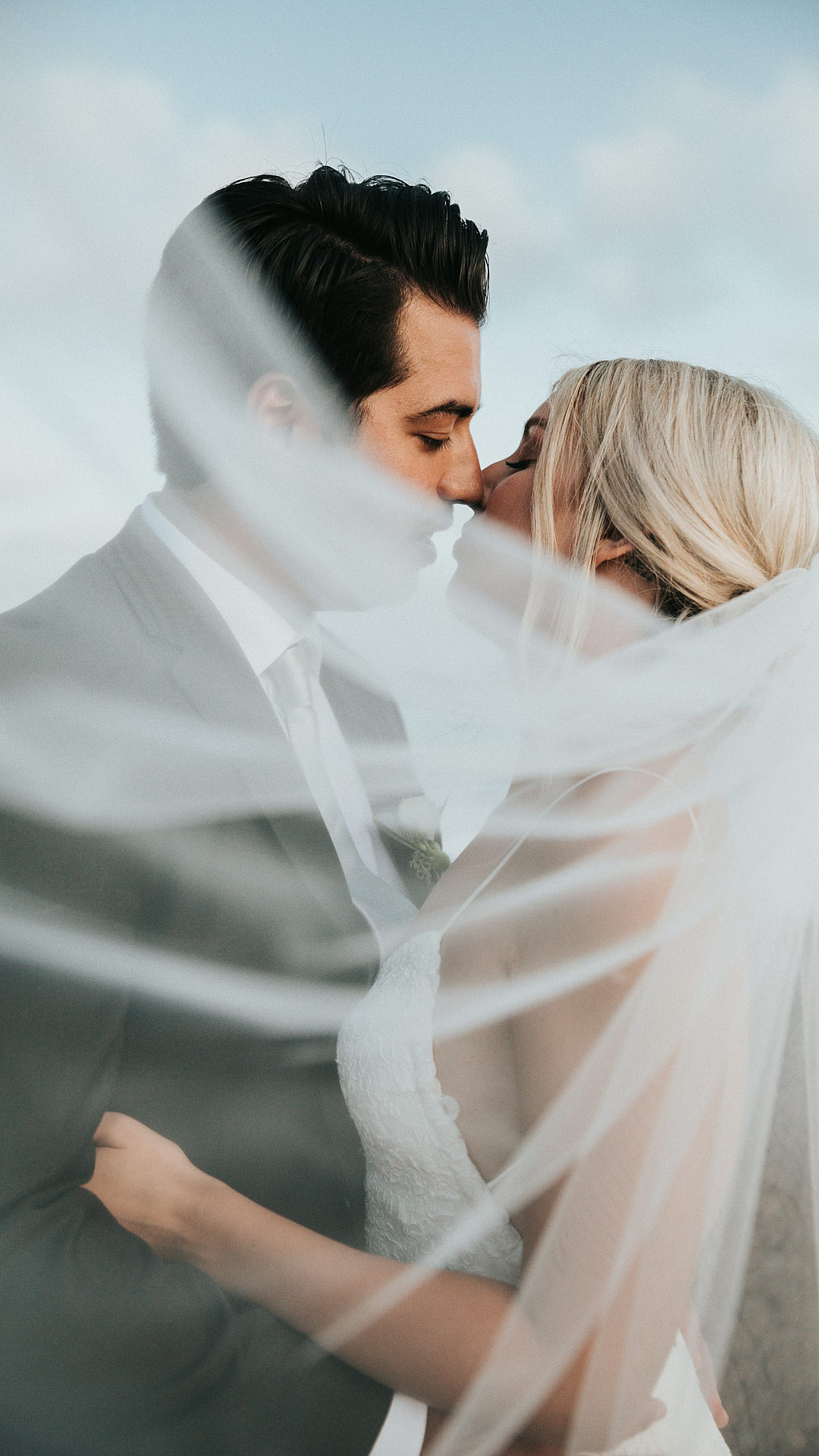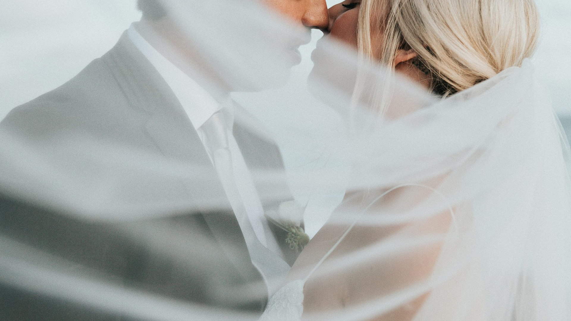 Wallpaper Groom and Bride About to Kiss During Daytime