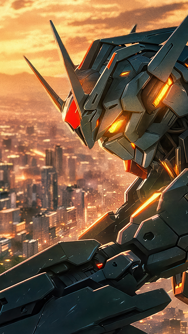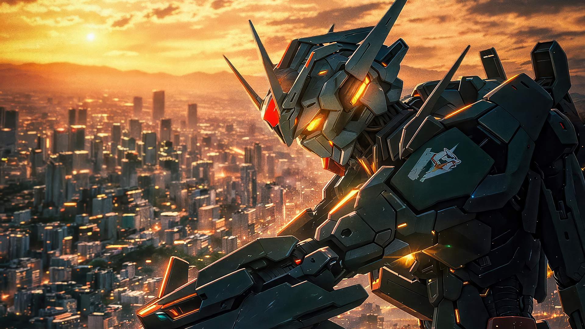 Gundam, Sunset, Cityscape, Urban, Sci-Fi, Anime, Mech, Robot, Giant Robot, Mecha, Evening, Twilight, Sun Setting, Futuristic City, Gundam Wallpaper