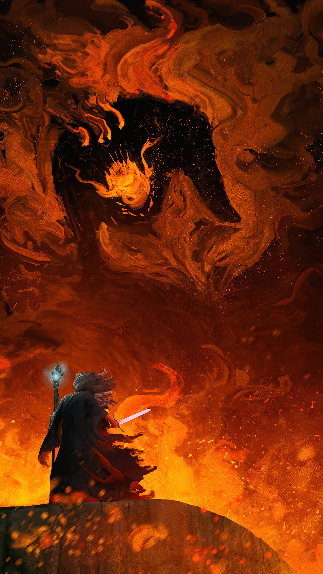 Lord of the Rings, Gandalf, Balrog, Moria, battle, fight, conflict, fantasy, epic, wallpaper, background, image, art, wizard, demon