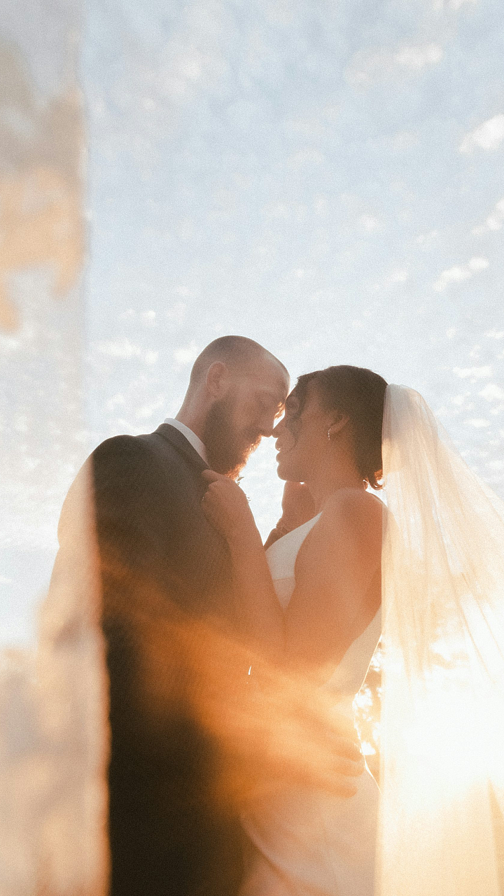 Keywords: man, woman, kissing, couple, love, romance, blue sky, daytime, sunny, outdoor, affection, intimacy, embrace, passion, tenderness