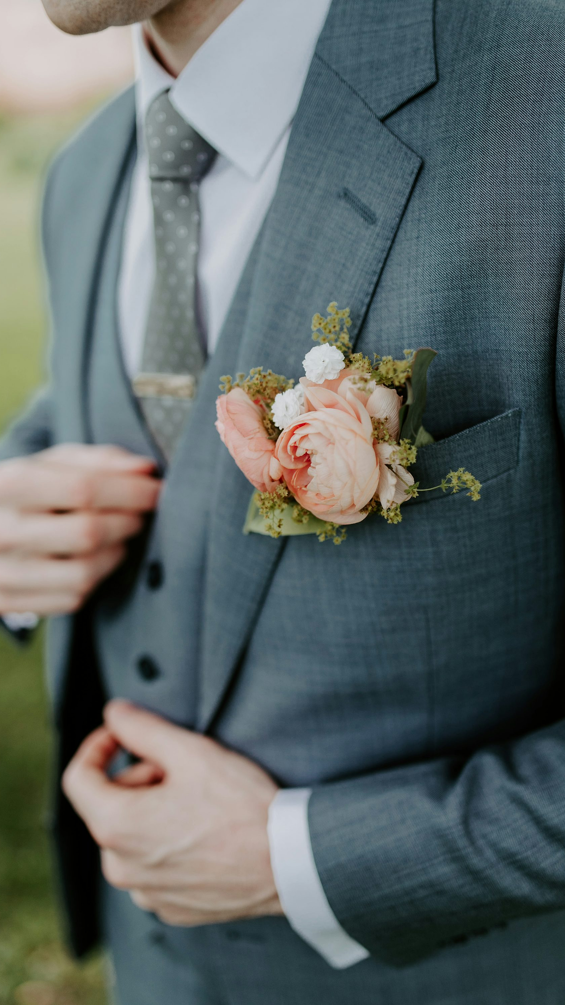 The formal wear and the vibrant flowers create a striking contrast, capturing attention and adding a touch of elegance to any device screen. Whether used as a desktop background, phone wallpaper, or even a tablet background, this image promises to add a touch of class and style.