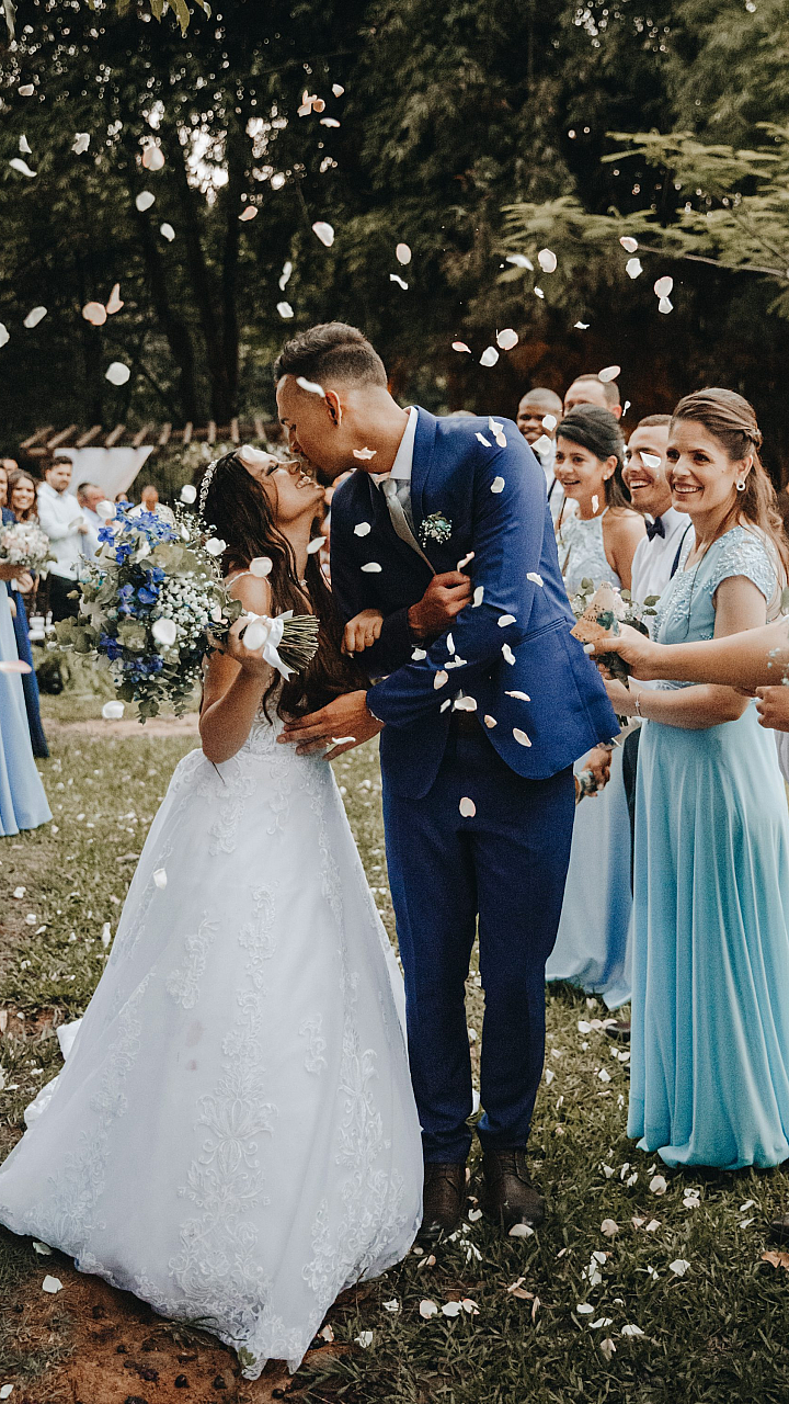 Keywords: man in blue suit, woman in white dress, wedding dress, kiss, couple, romance, love, wedding, marriage, embrace, groom, bride, affectionate, passionate, intimate