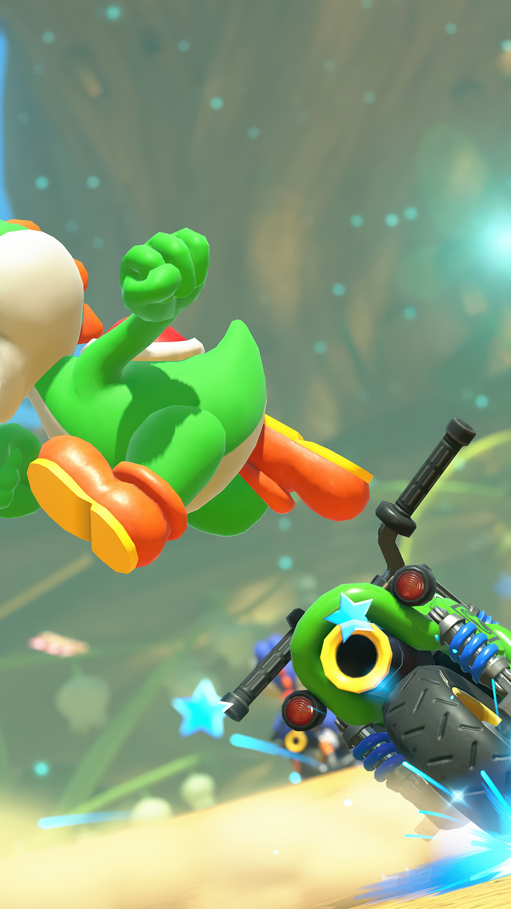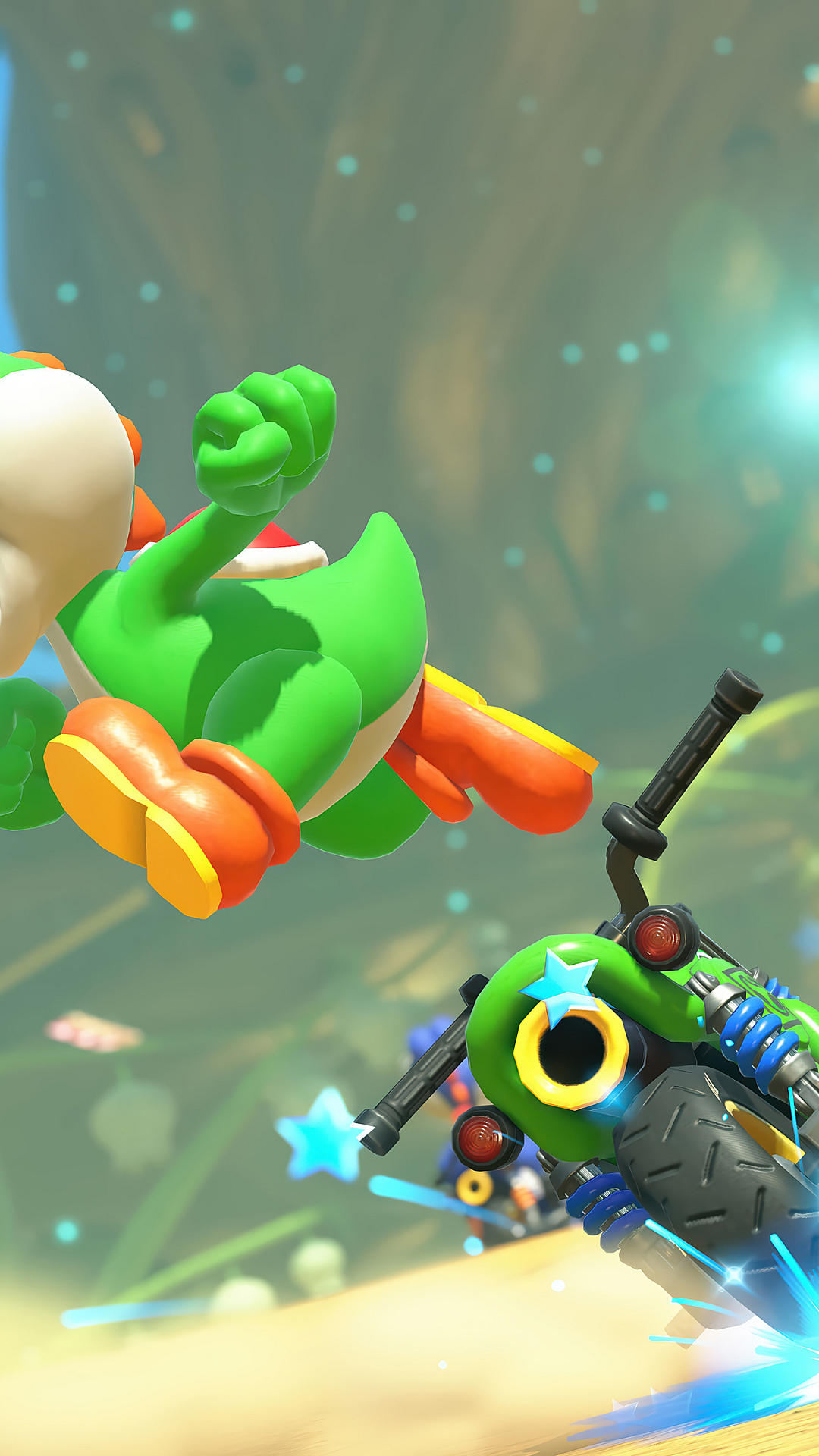 Mario Kart, Yoshi, World, Wallpaper, Background, Nintendo, Racing, Game, Character, Dinosaur, Green, Cute, Kawaii, Adorable, High-resolution