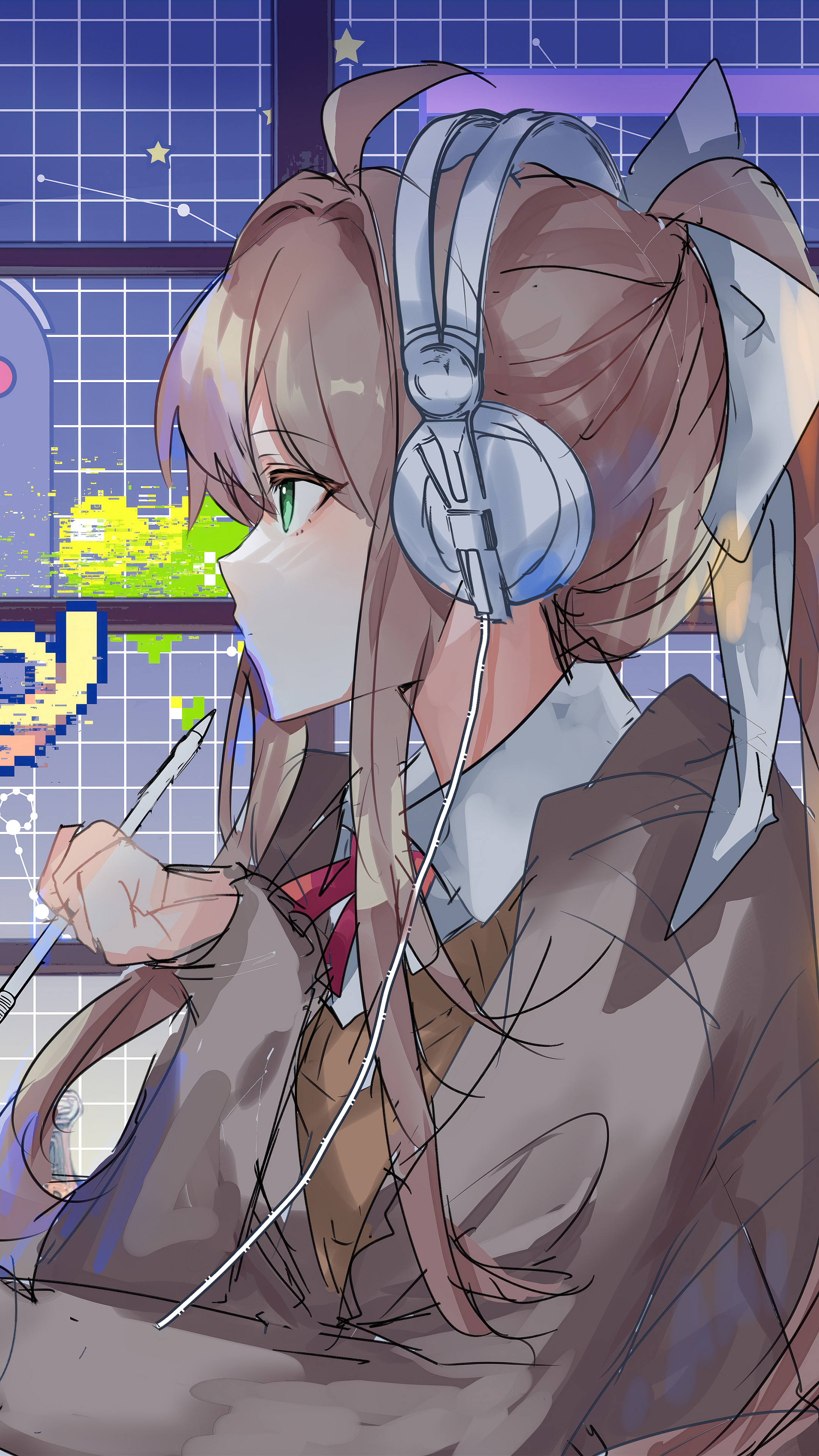 Monika, Doki Doki Literature Club, DDLC, anime, wallpaper, background, desktop, digital art, fanart, literature club, virtual girlfriend, game, cute, beautiful, eyes