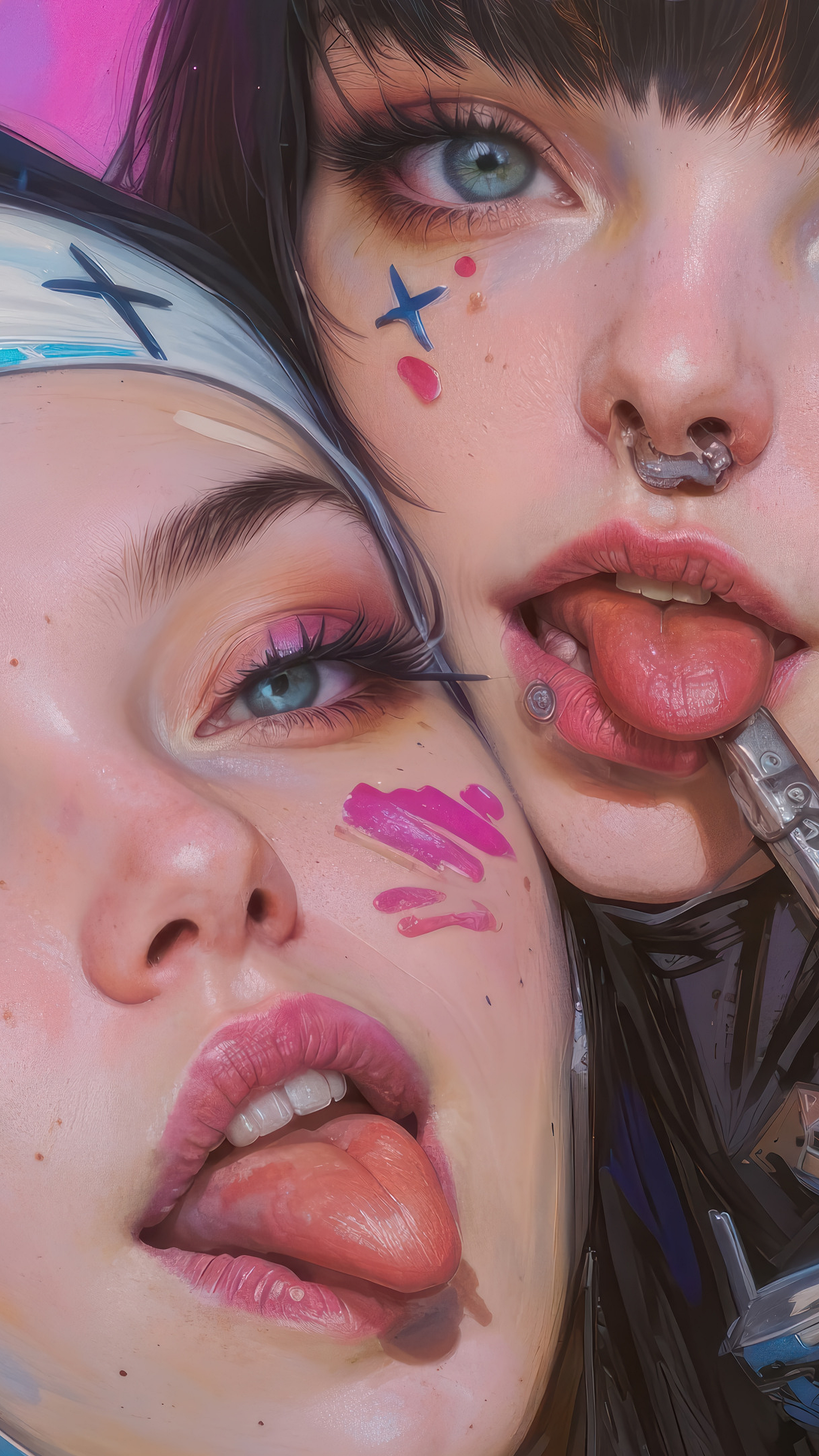 The juxtaposition of the traditionally pious nun with the rebellious and technologically advanced cyberpunk setting creates a captivating visual tension. The tongue-out expression adds a layer of playful defiance, further enhancing the image’s intriguing nature. The high-resolution quality ensures sharp details and vibrant colors, regardless of screen size.