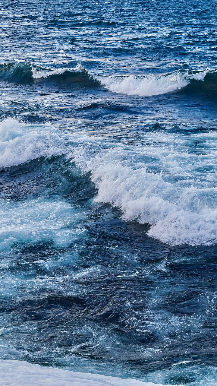 ocean waves, waves crashing, shoreline, coast, sea, ocean, beach, water, surf, foam, whitecaps, daytime, sunlit, coastal, seascape