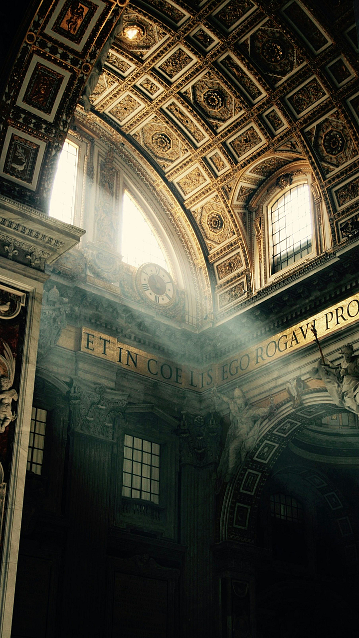 This wallpaper features a captivating photograph of the inside of a black structure. The image showcases the interplay of light and shadow, highlighting the architectural details and creating a sense of depth and mystery. The predominantly dark tones create a moody and sophisticated atmosphere, ideal for those who appreciate minimalist and modern aesthetics.