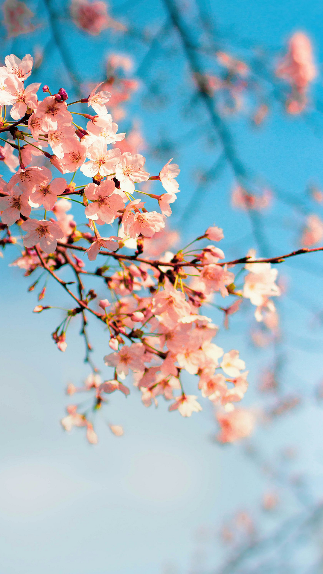 This wallpaper features a stunning collection of pink and white cherry blossoms, creating a serene and beautiful backdrop for your devices. The delicate petals and soft color palette evoke a sense of spring and tranquility.