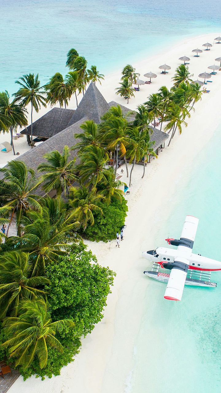 Wallpaper Plane Parked Beside Trees on Seashore