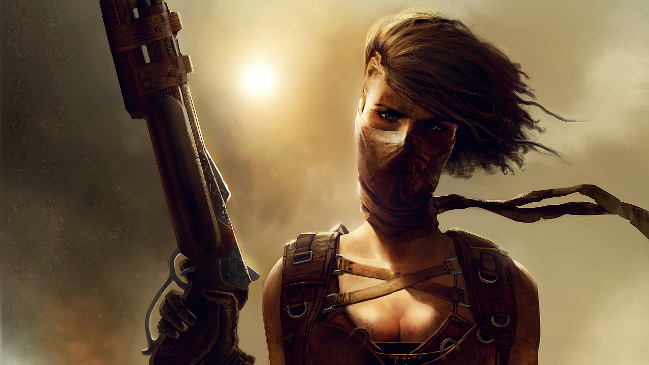 post-apocalyptic, girl, gun, art, wallpaper, dystopian, wasteland, survivor, female warrior, firearms, weaponry, futuristic, cyberpunk, rugged, strong