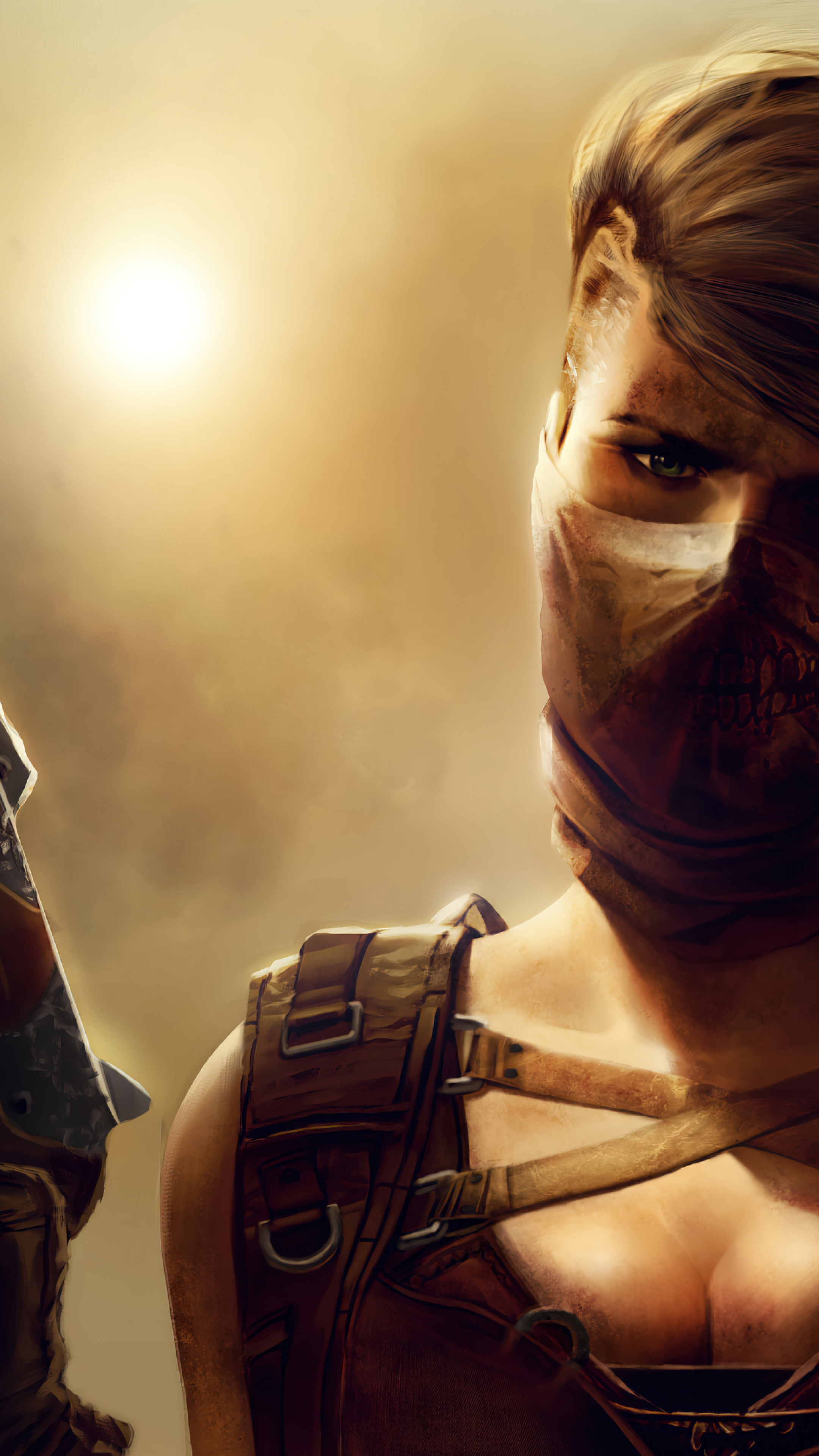 This wallpaper is ideal for fans of post-apocalyptic themes, cyberpunk aesthetics, and powerful female characters. The blend of gritty realism and artistic flair makes it a unique and compelling choice for anyone seeking a visually arresting and thematic wallpaper.