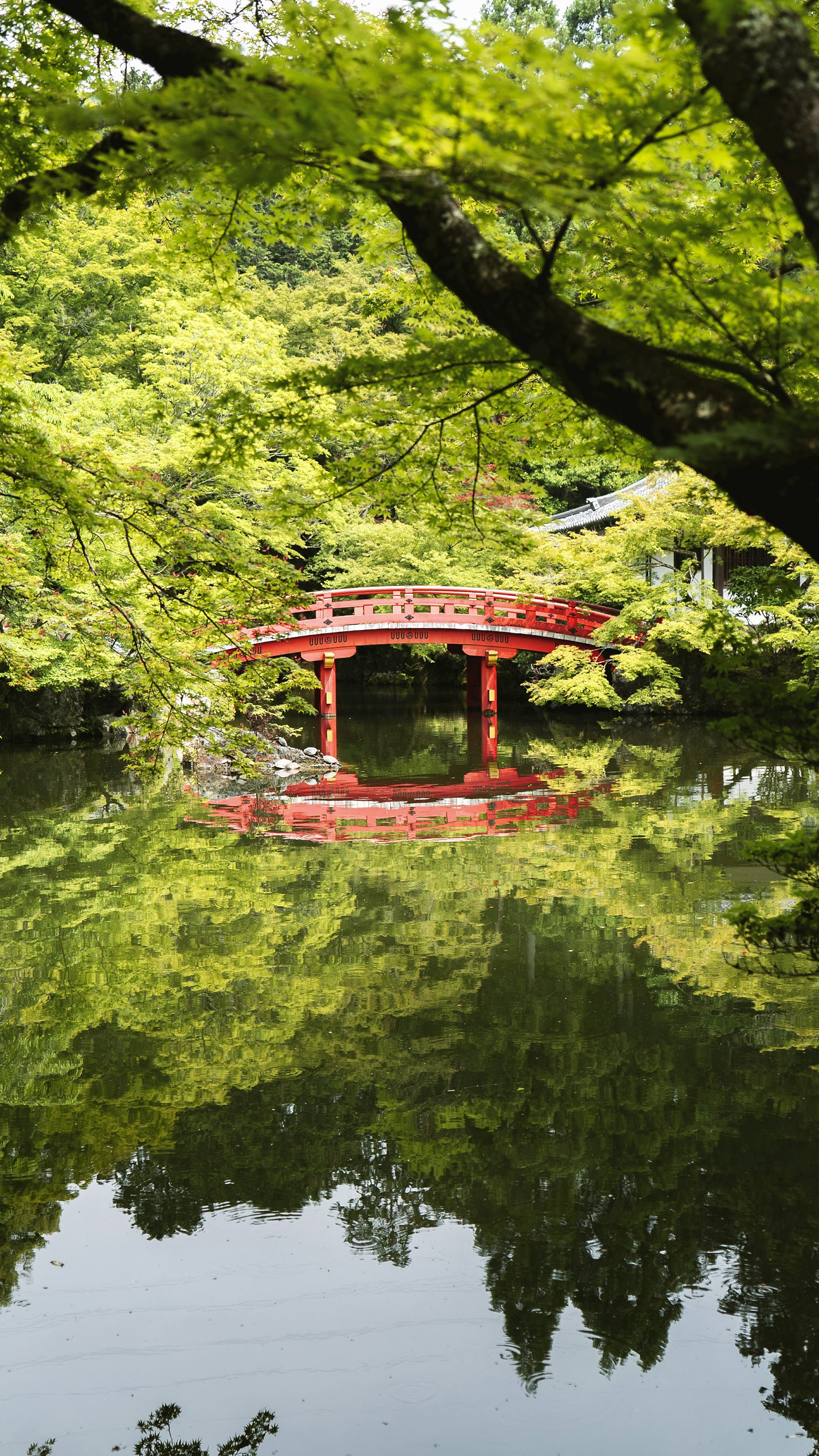 red bridge, bridge wallpaper, water, trees, nature, landscape, scenery, red structure, river, lake, pond, forest, woods, architecture, outdoors