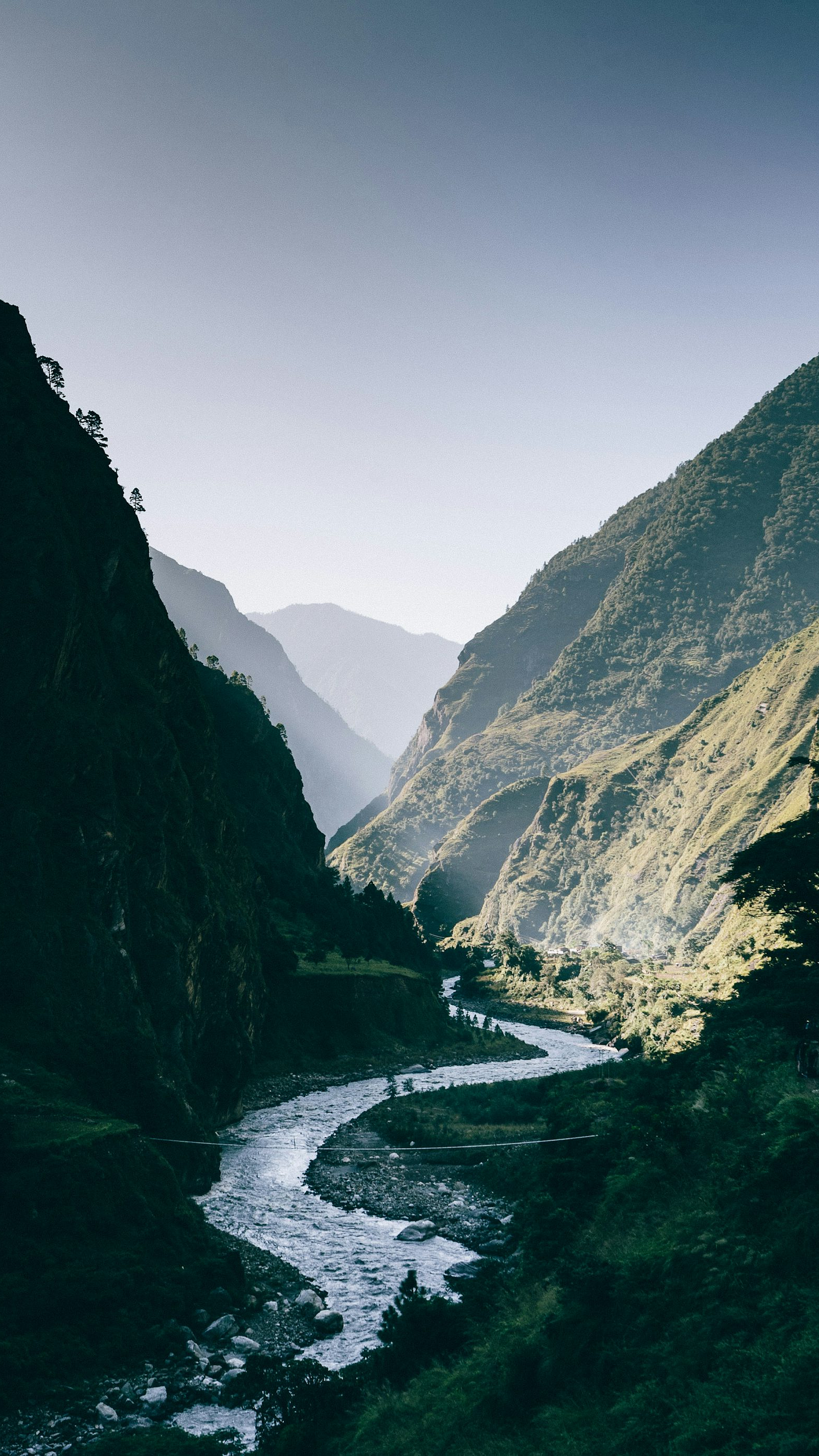river, mountains, daytime, landscape, scenery, nature, water, valley, peak, hills, sunlight, daylight, serene, tranquil, peaceful, mountain river, river valley, mountain landscape