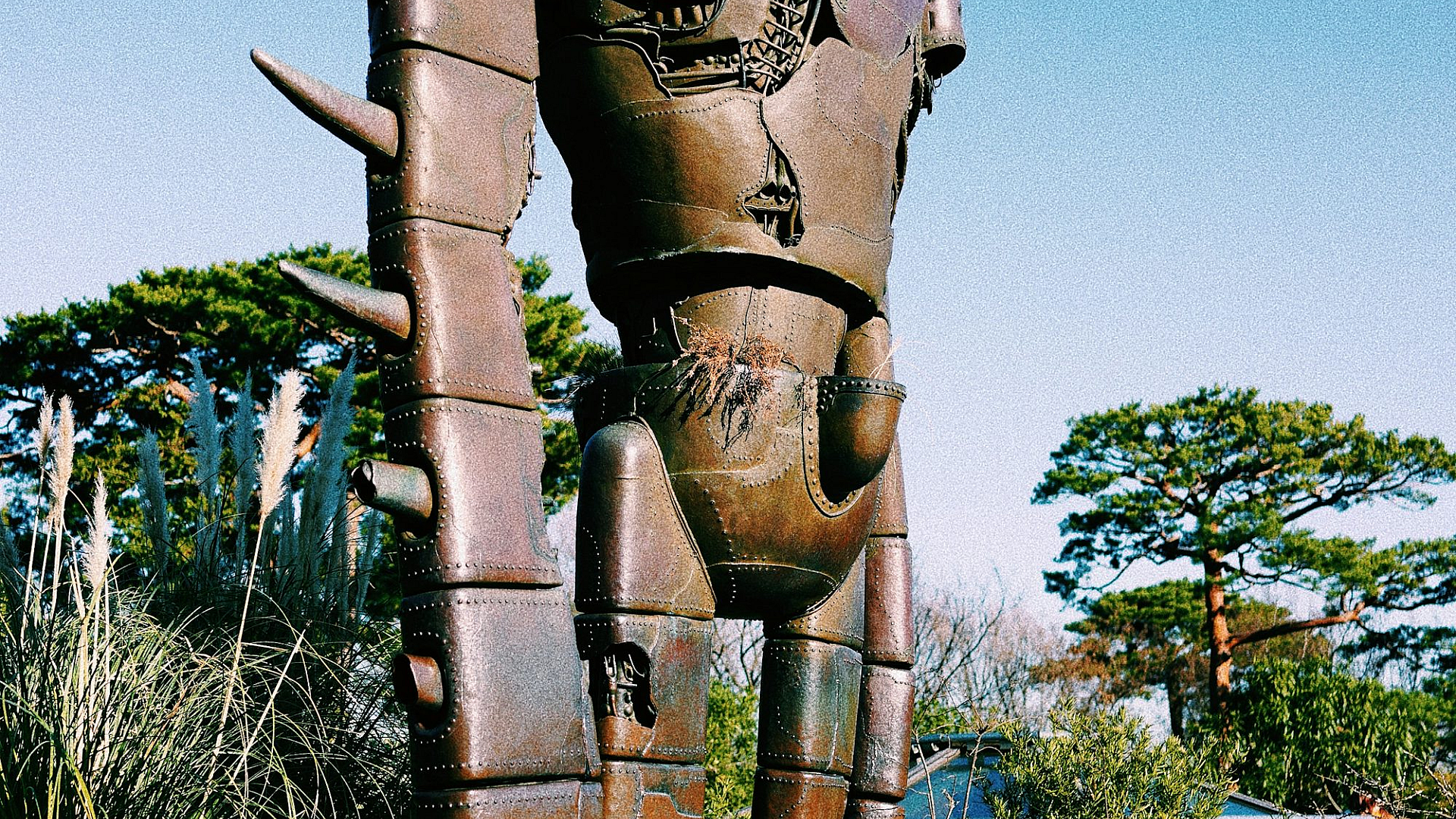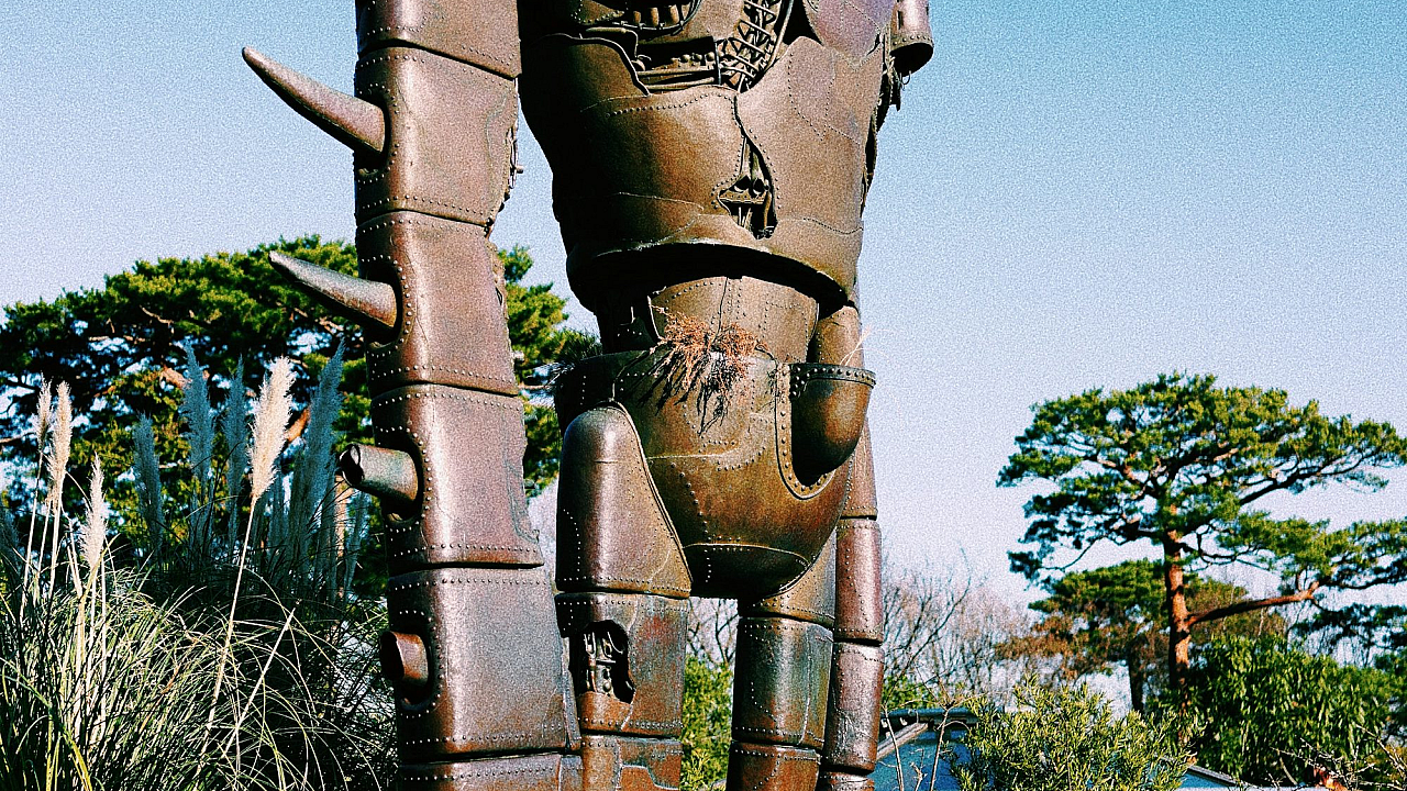 robot statue, flowers, daylight, floral arrangement, statue, sculpture, bot, android, metallic, garden, bloom, blossom, sunny, bright, robotic