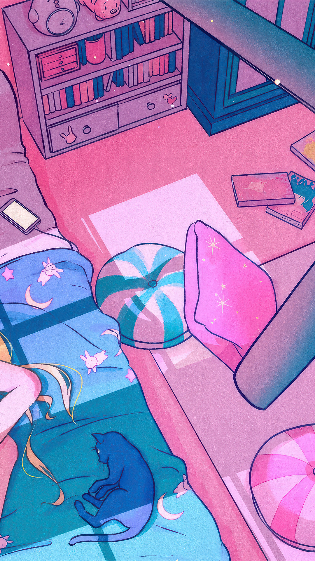 Sailor Moon, Sleeping, Anime Girl, Wallpaper, Background, Cute, Dreamy, Peaceful, Serene, Tranquil, Manga, Girl, Moon, Resting, Asleep