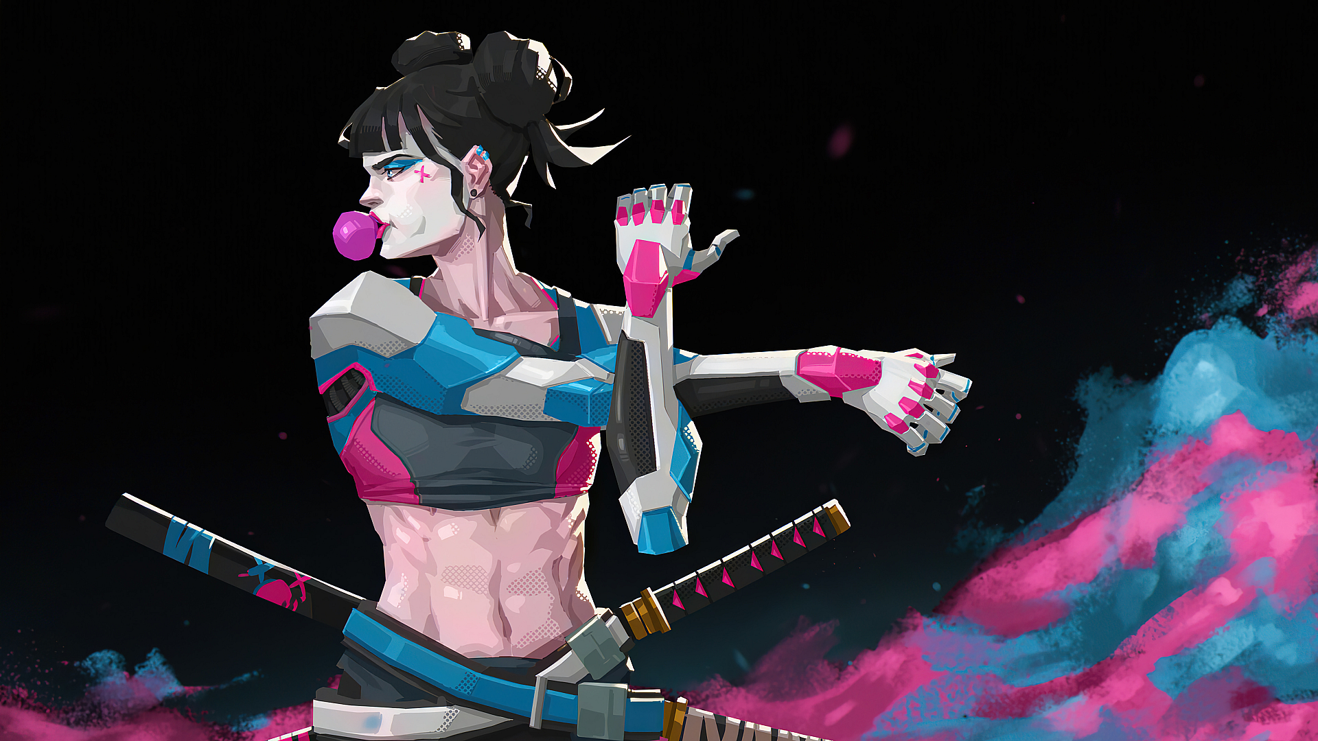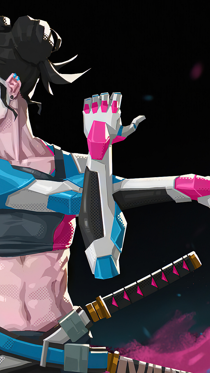 Samurai Girl, Cyberpunk, Sci-Fi, Wallpaper, Background, Digital Art, Fantasy, Future, Technology, Swordswoman, Neon, Blade, Robot, Mech, Cybernetic