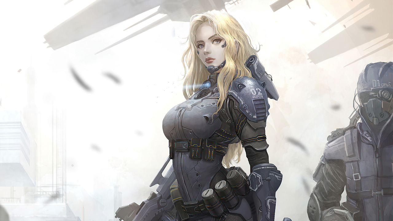 Sci-fi, girl, soldier, woman warrior, female soldier, space marine, futuristic soldier, cyberpunk soldier, military, army, battle, combat, weapon, spaceship, technology