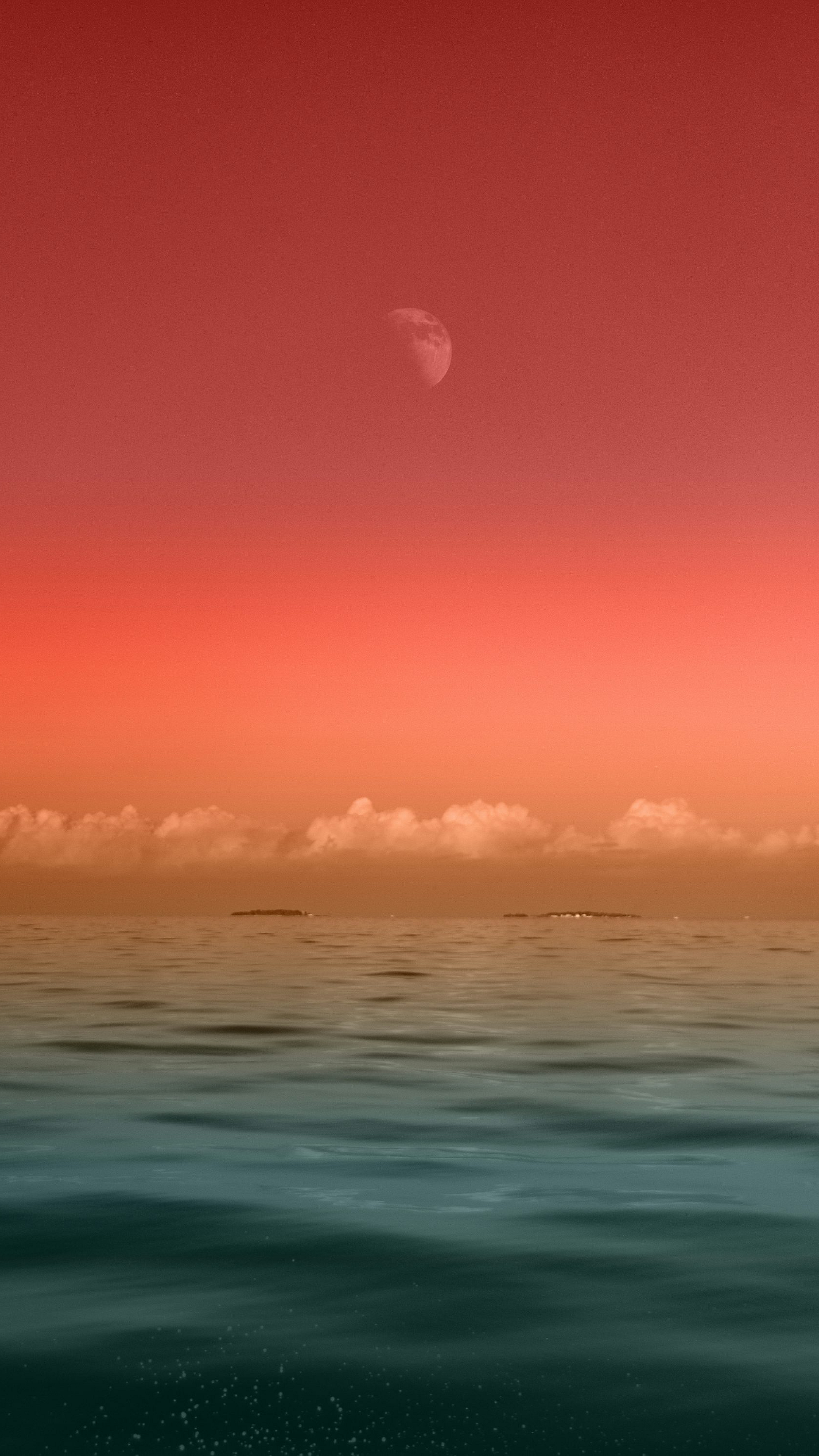 Wallpaper Seascape Photography of Sea Under Half-Moon
