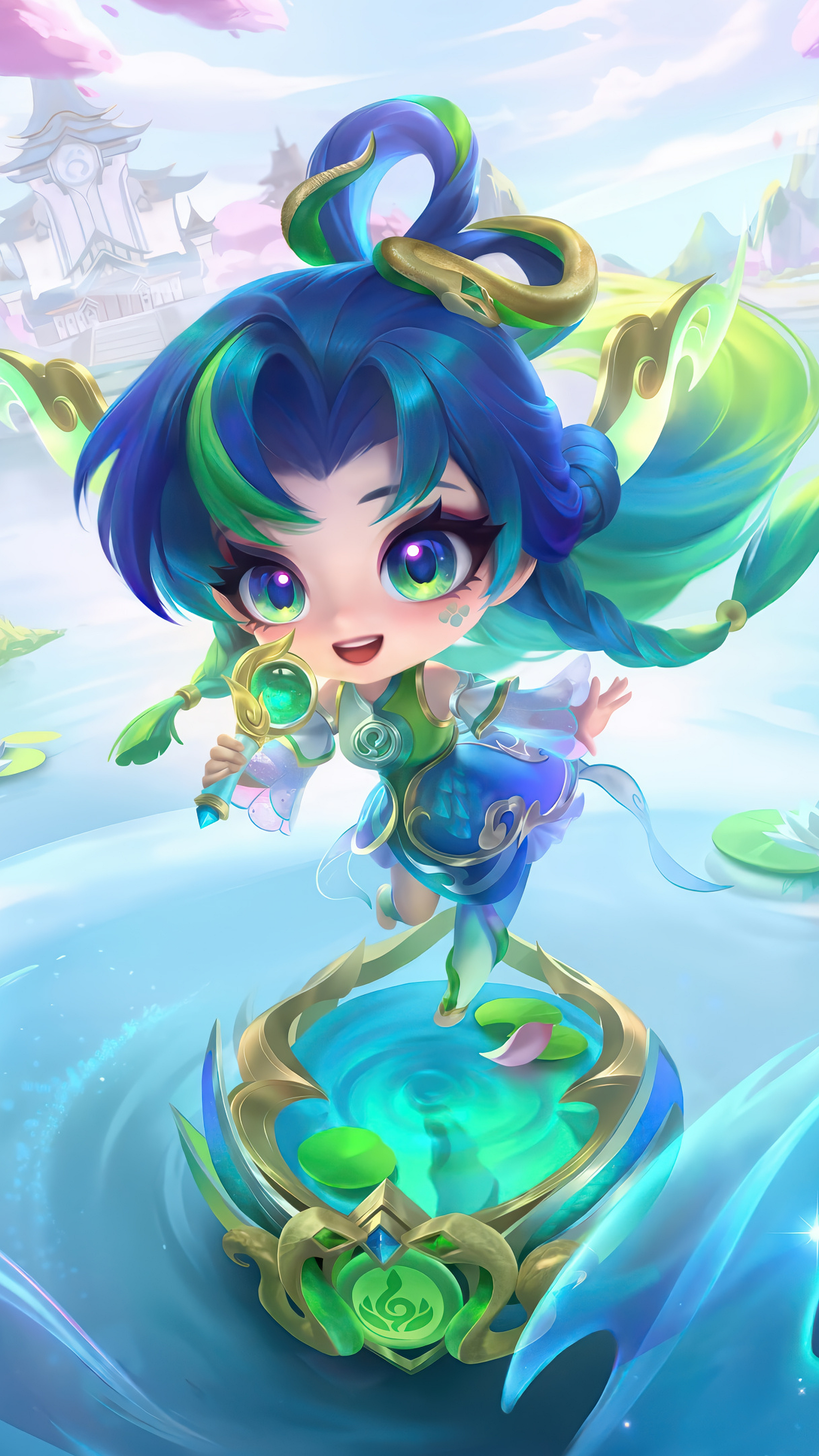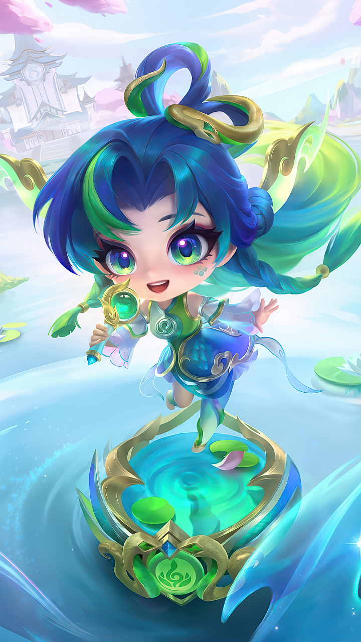 Seraphine, White Snake, Chibi, TFT, Teamfight Tactics, League of Legends, Wallpaper, Background, Art, Illustration, Cute, Adorable, Cartoon, Anime, Fantasy