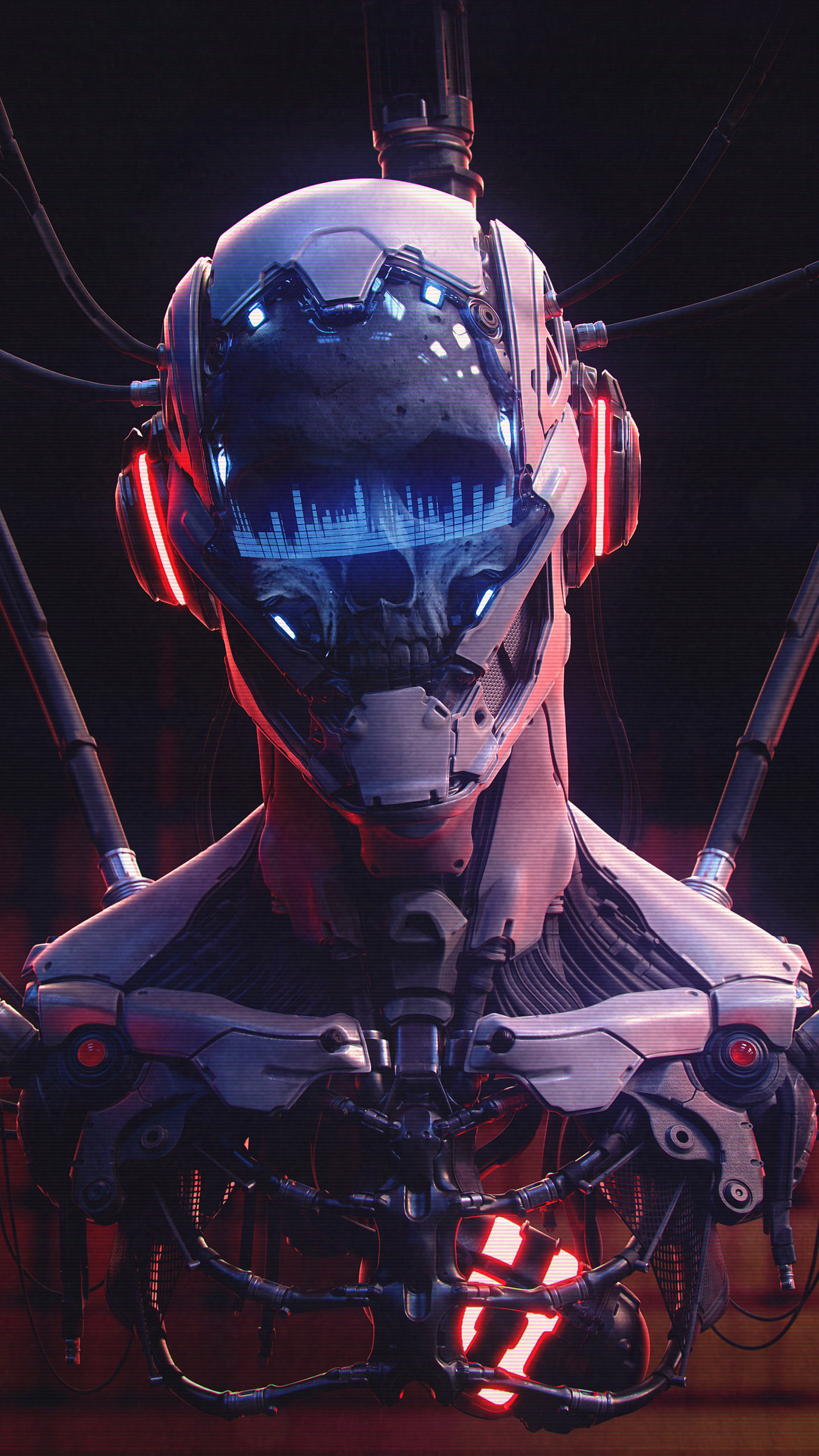 The incorporation of audio elements adds a unique twist to the typical skull and cyberpunk wallpaper designs. It creates a visual narrative that suggests a connection between the human form and advanced technology, a common theme within the sci-fi genre. This makes it a captivating piece for desktop backgrounds, phone screens, or any other device where a striking and unique wallpaper is desired.